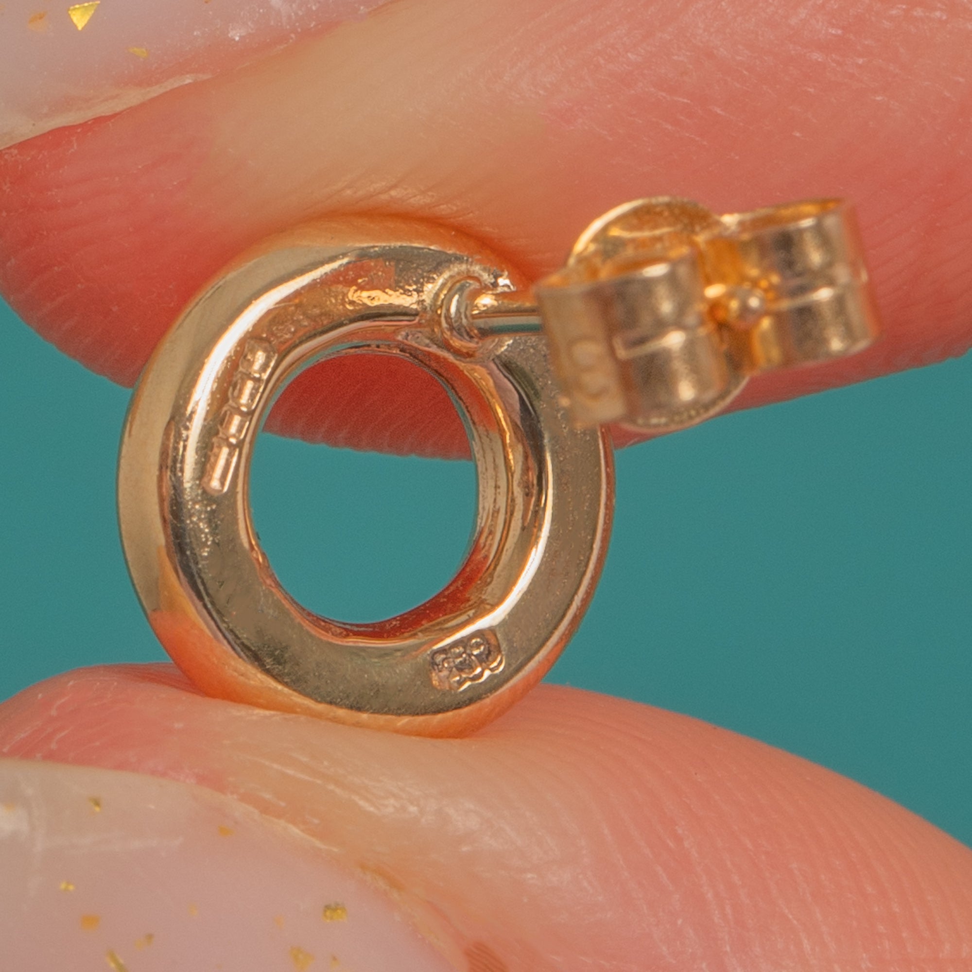 Sleek, simple, and effortlessly polished, these 9ct Gold circle studs bring a minimalist touch to any jewellery wardrobe. The open “donut” silhouette sits flat to the lobe with a glossy high-polish finish that catches the light beautifully—perfect for everyday wear and easy to elevate for evening.
