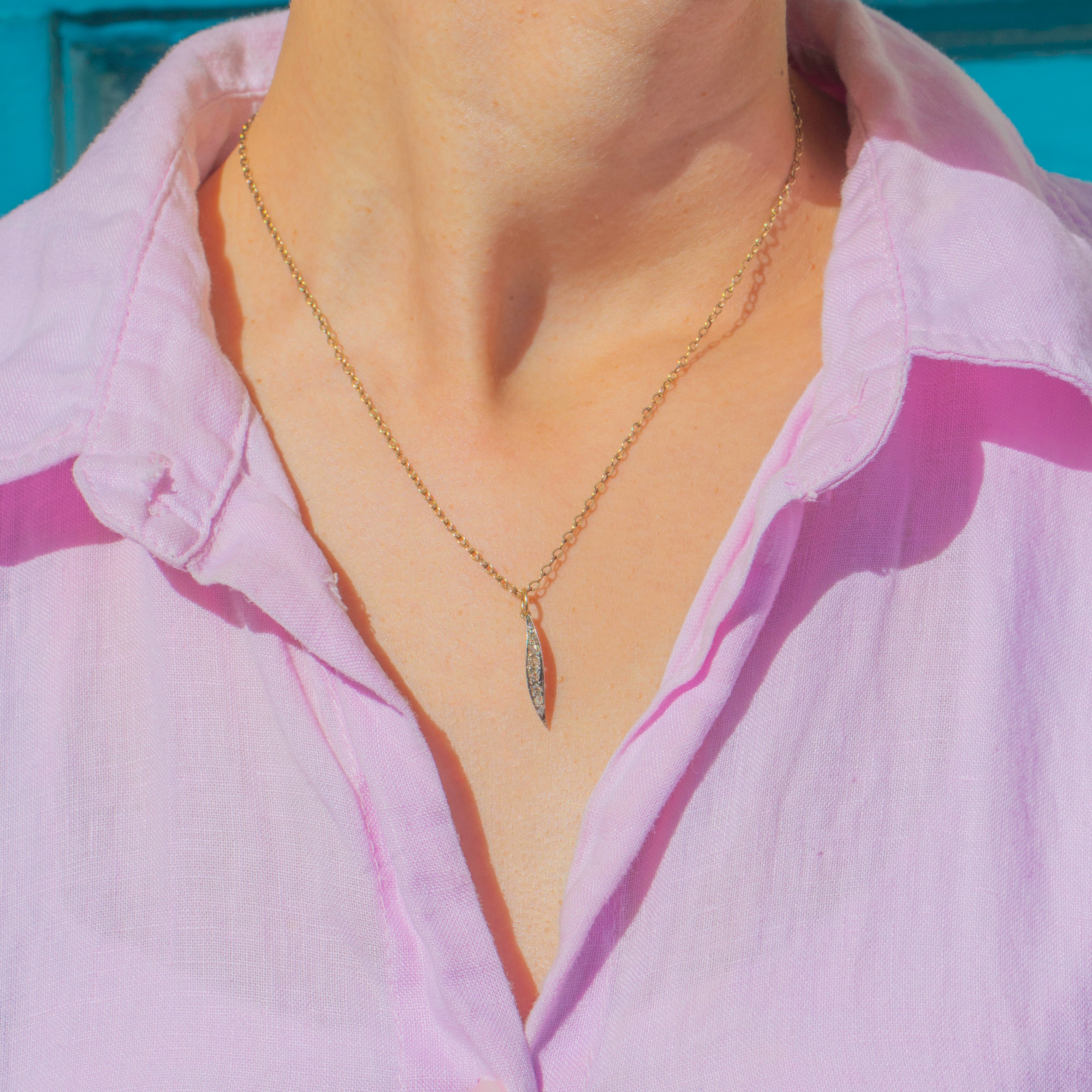 Skinny Antique Diamond Leaf Charm- 18ct & Silver