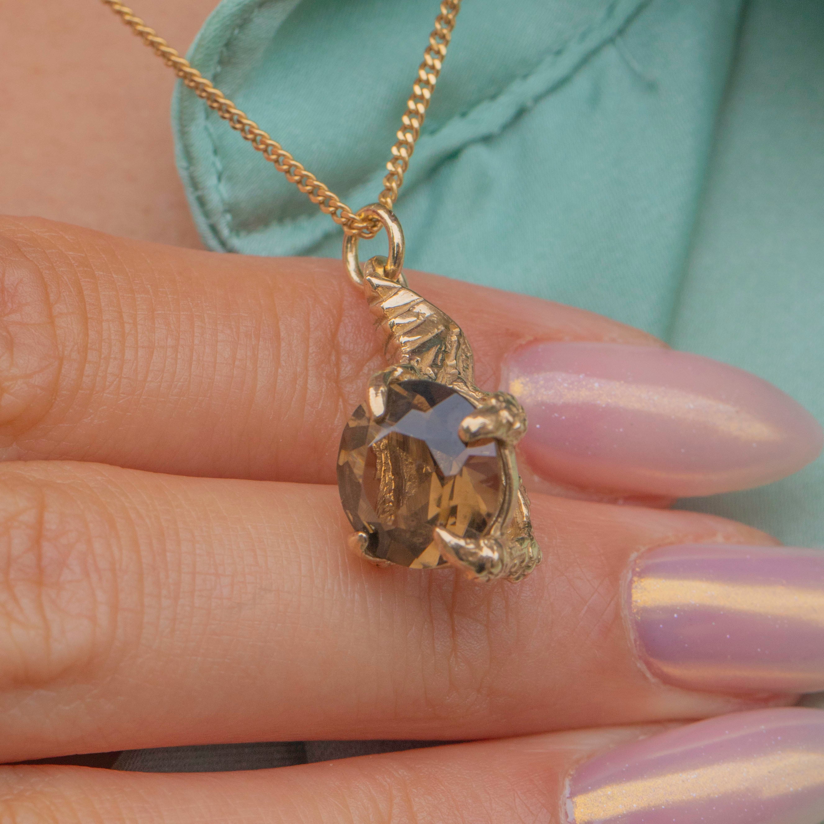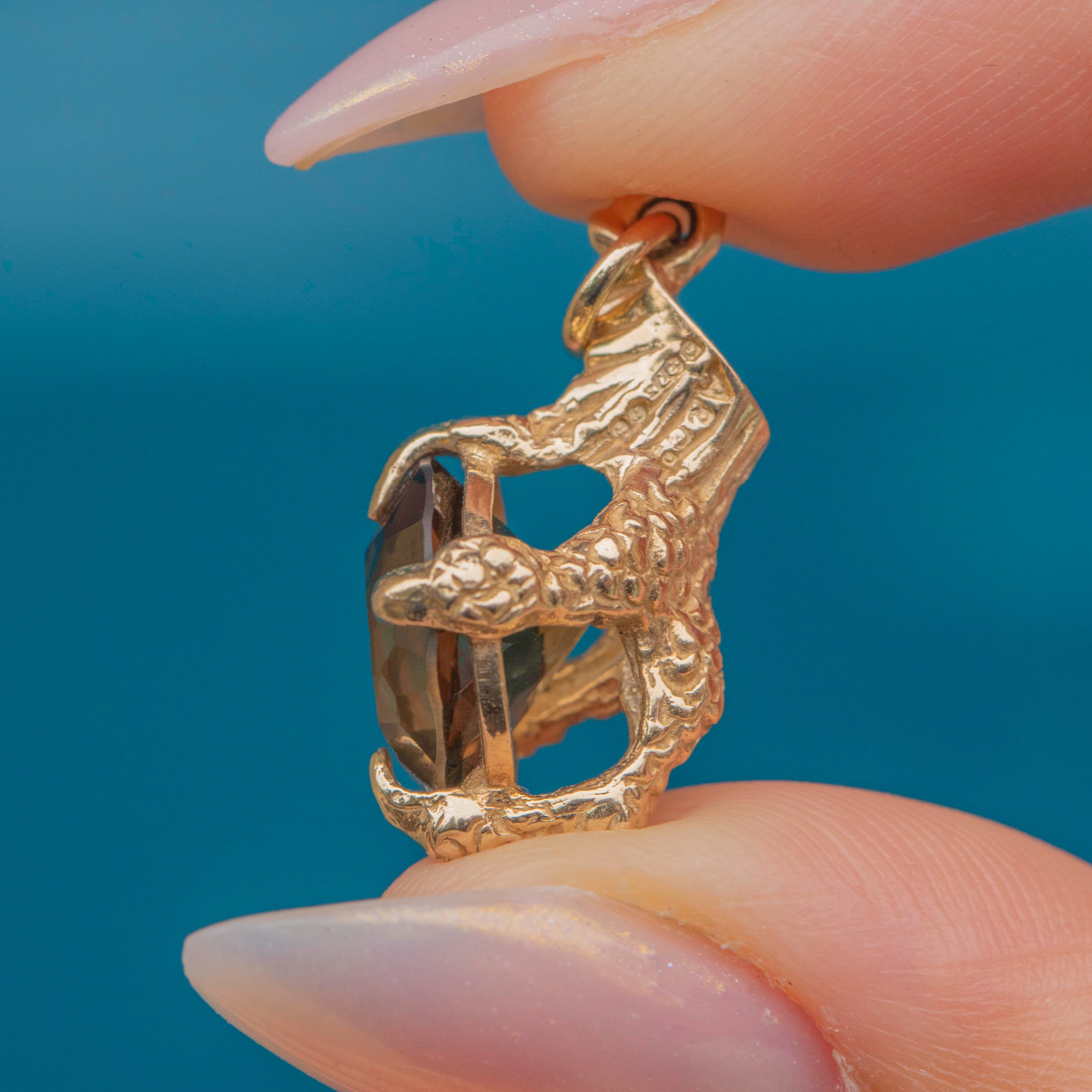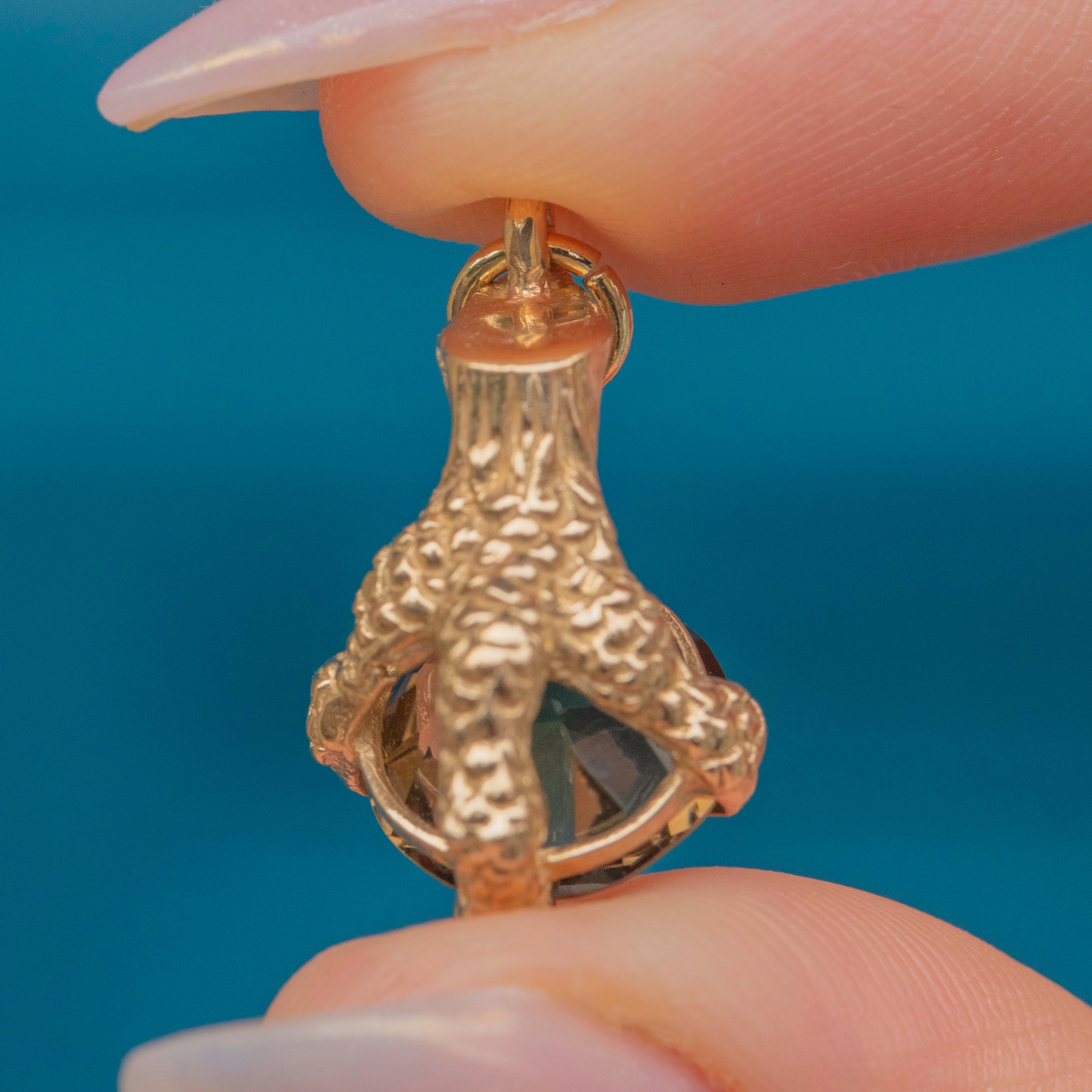 Solid 9ct Gold Smokey Quartz Eagle Claw Pendant