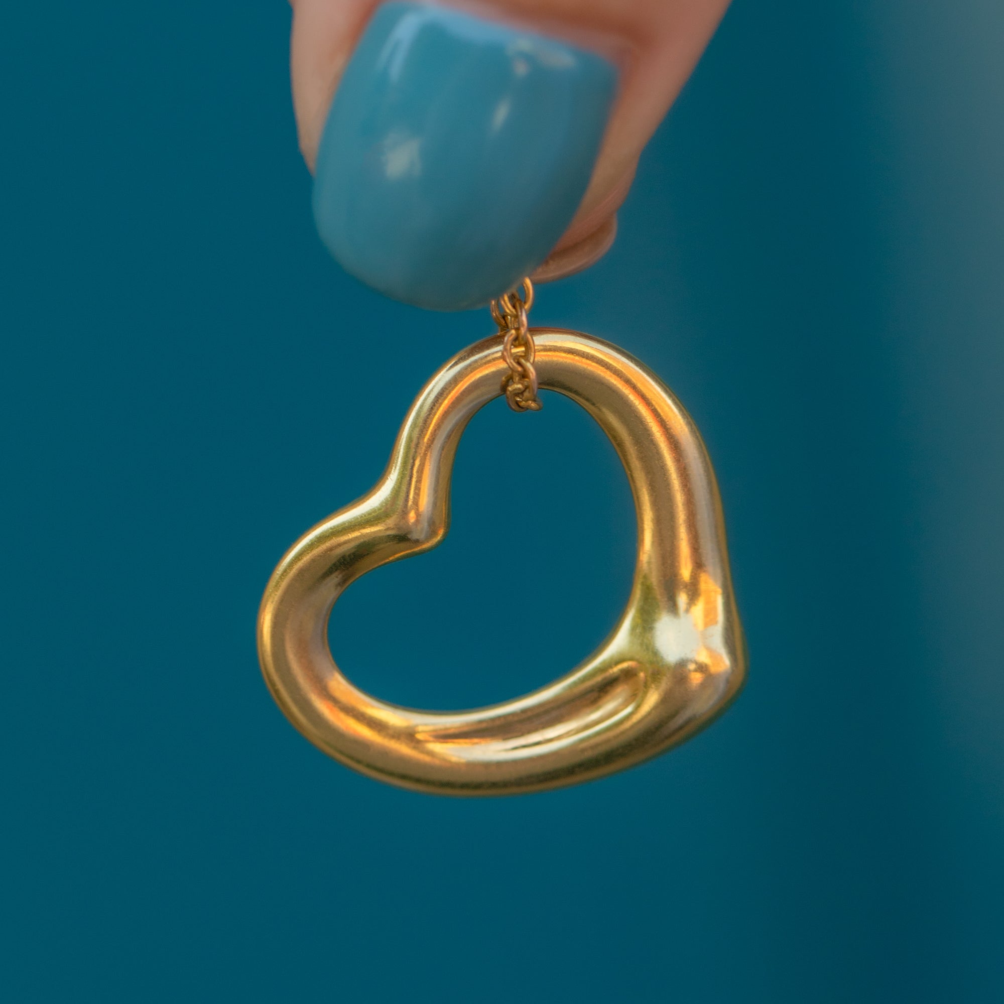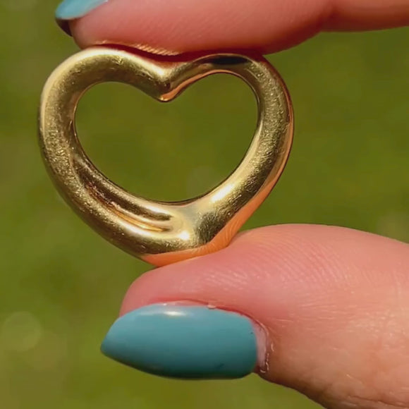 EXCELLENT. We are pleased to present this Tiffany Elsa Perreti 18ct Gold open heart pendant in excellent condition! Formed to perfection, her 18ct Gold is highly saturated without any damage to note. The stamps are crisp and she even has a stamp of Elsa Perretti's signature on the bottom. The open centre means you can suspend this pendant from any chain with ease, allowing you to wear and style her however you please. Be quick as she won't be with us for long!