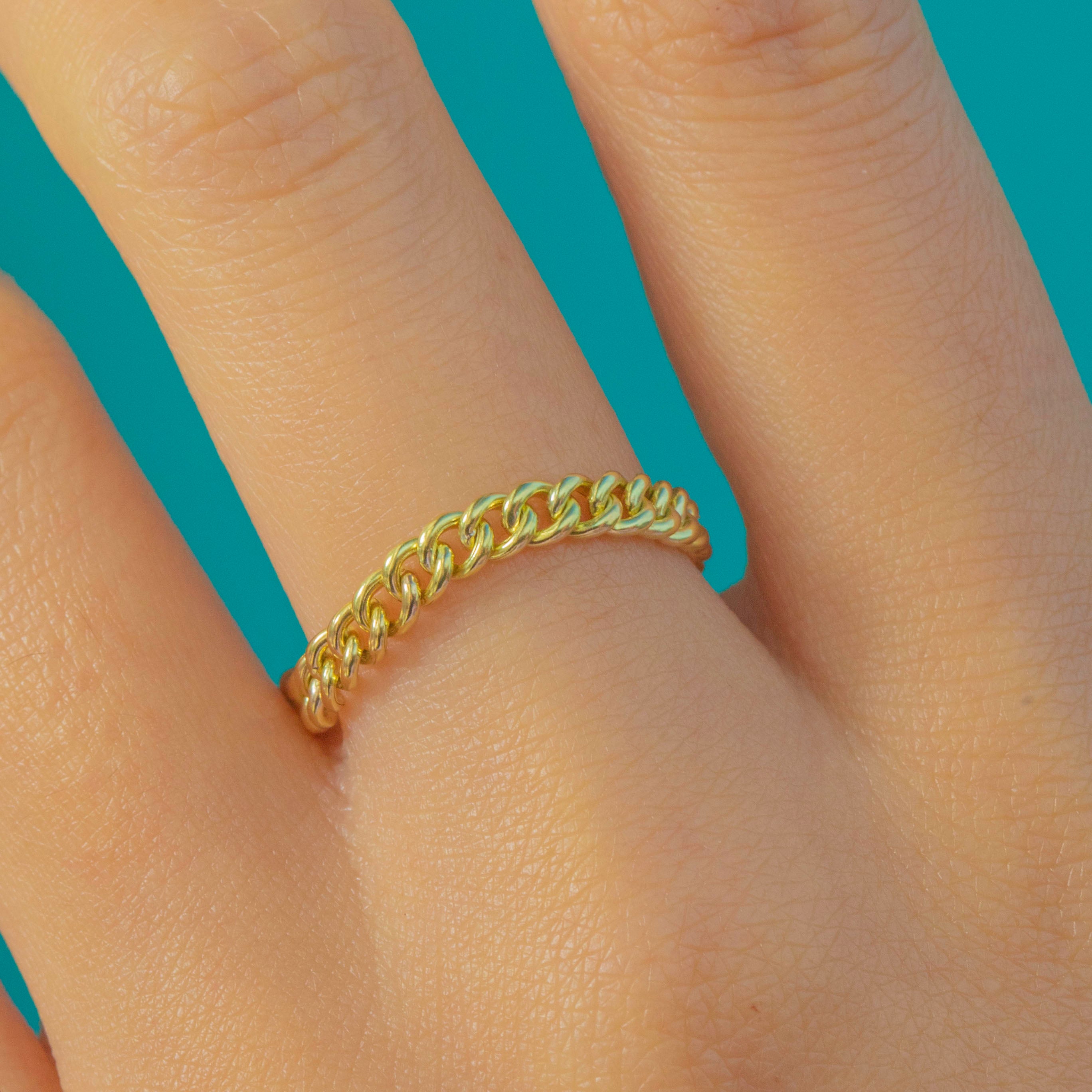 A striking Victorian 15ct Gold curb-chain ring, crafted from richly toned solid antique 15ct Gold with classic rounded 3mm links.