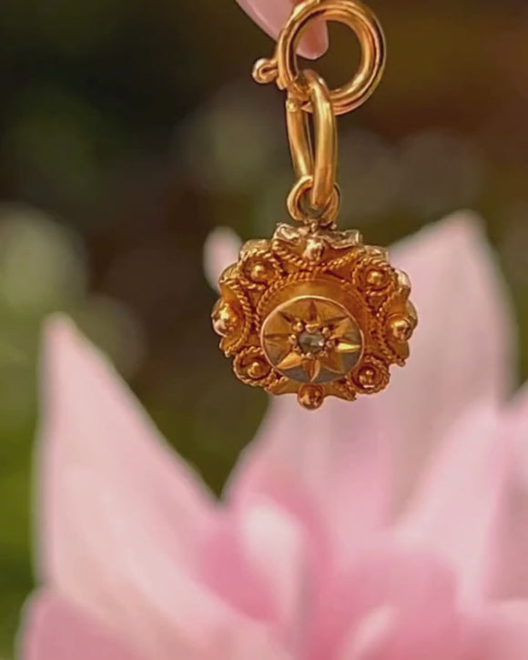 Victorian 15ct Gold Etruscan Diamond Charm