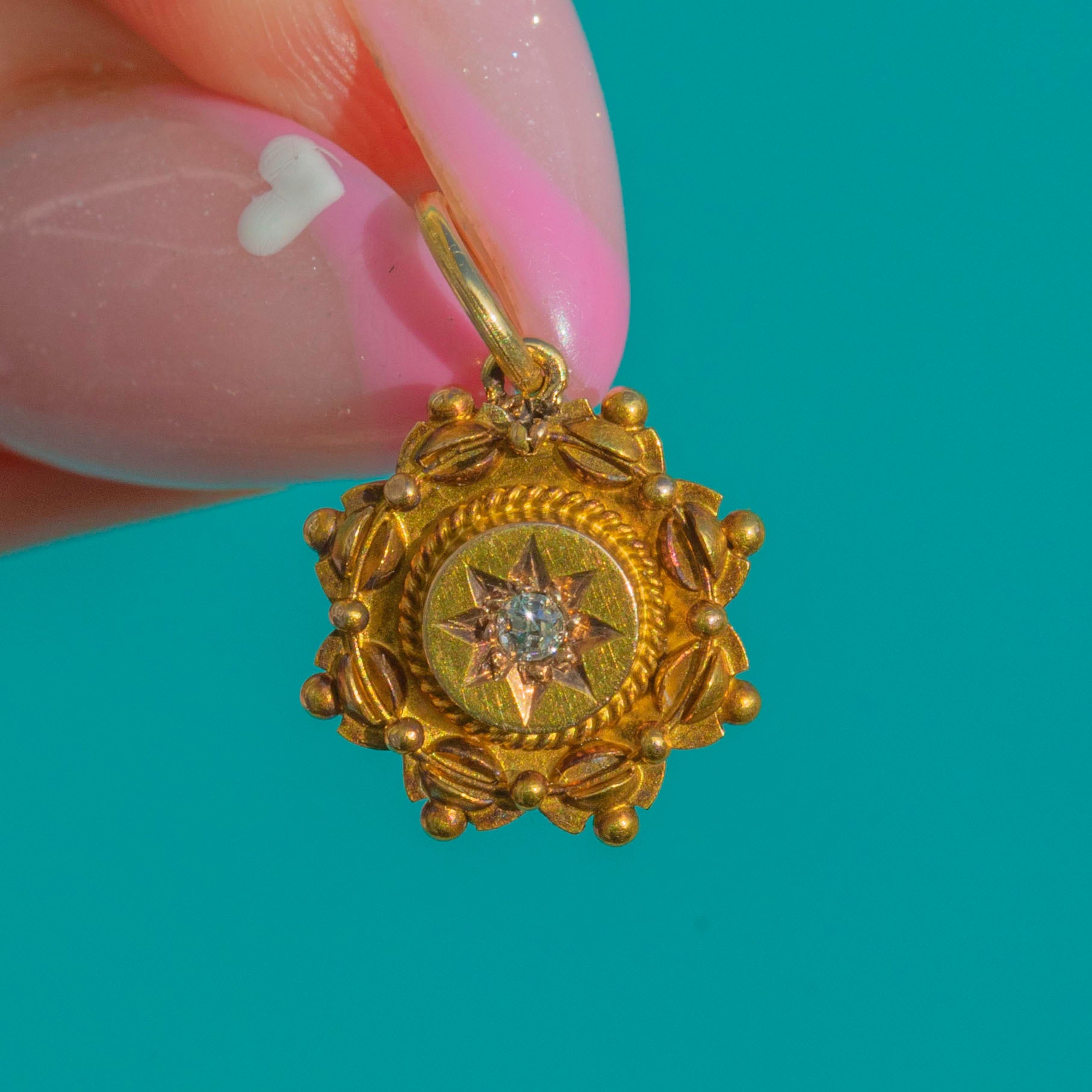 Victorian 15ct Gold Etruscan Diamond Charm c1890
