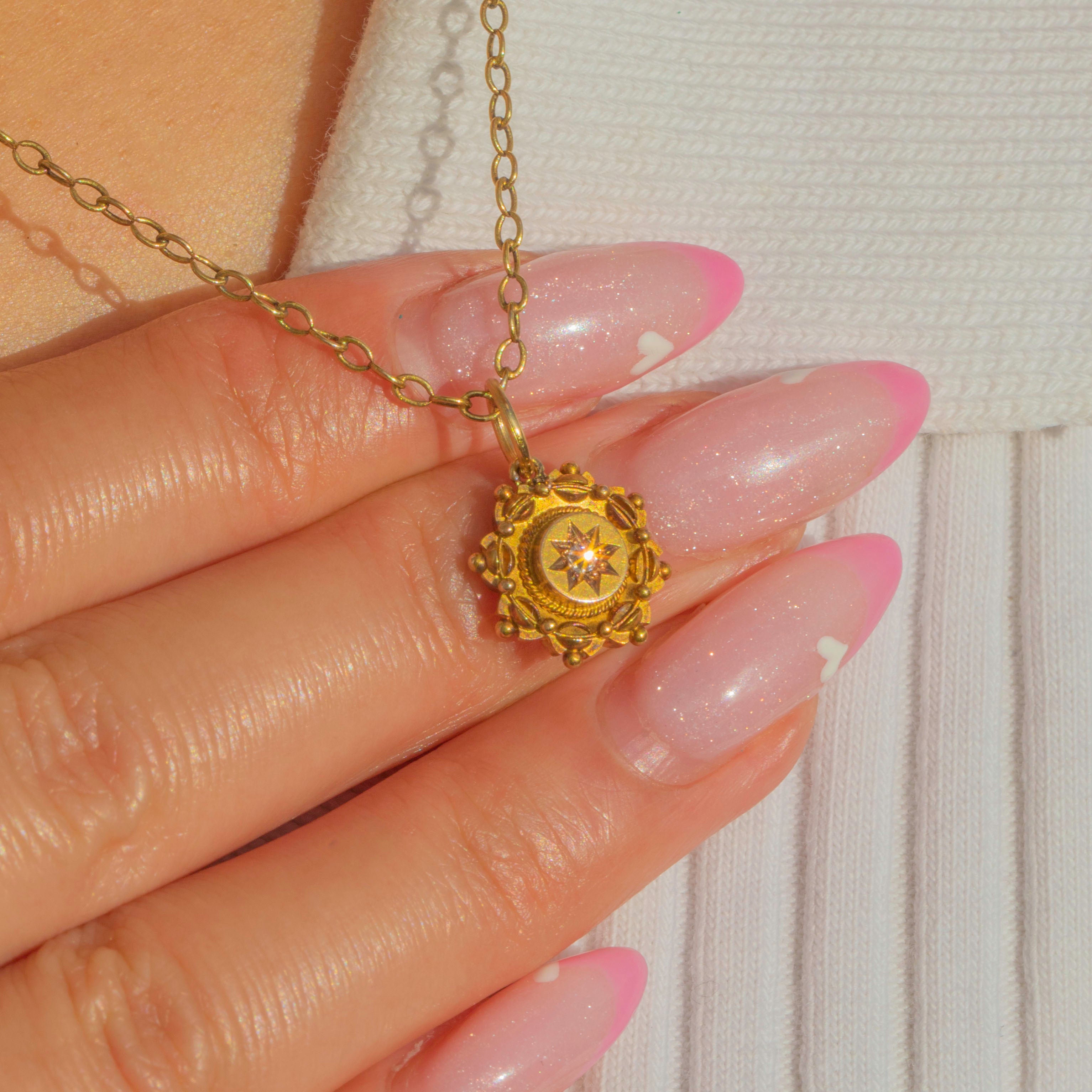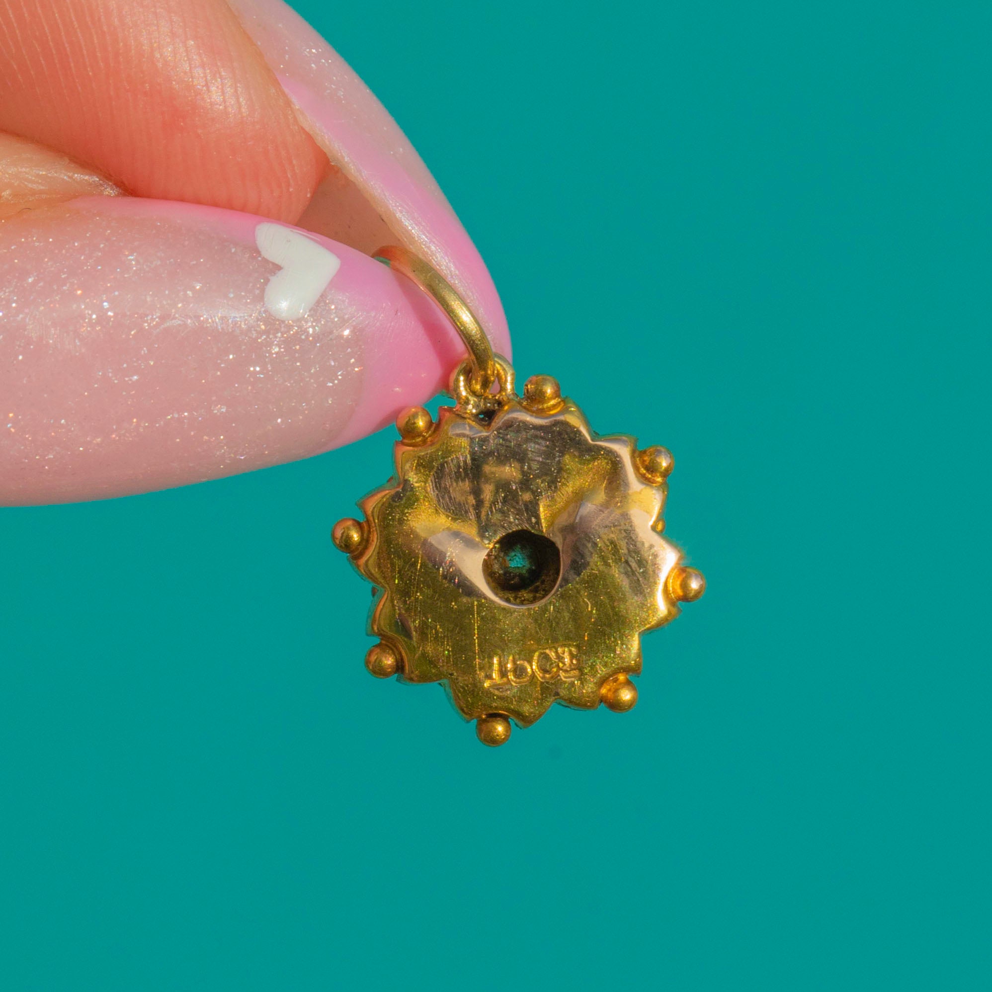 At its centre glints a dainty old mine-cut Diamond, adding a touch of subtle sparkle. Once likely converted from a stick pin, this beautifully made charm carries all the craftsmanship and warmth of the Victorian era.
