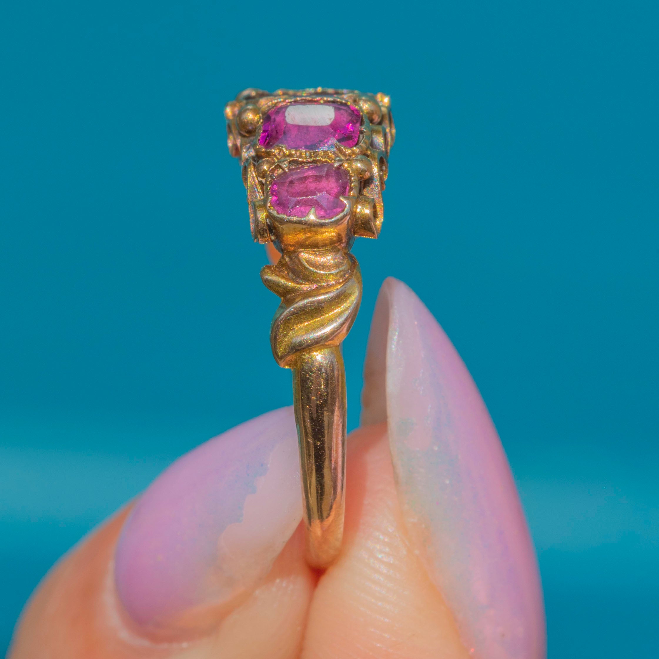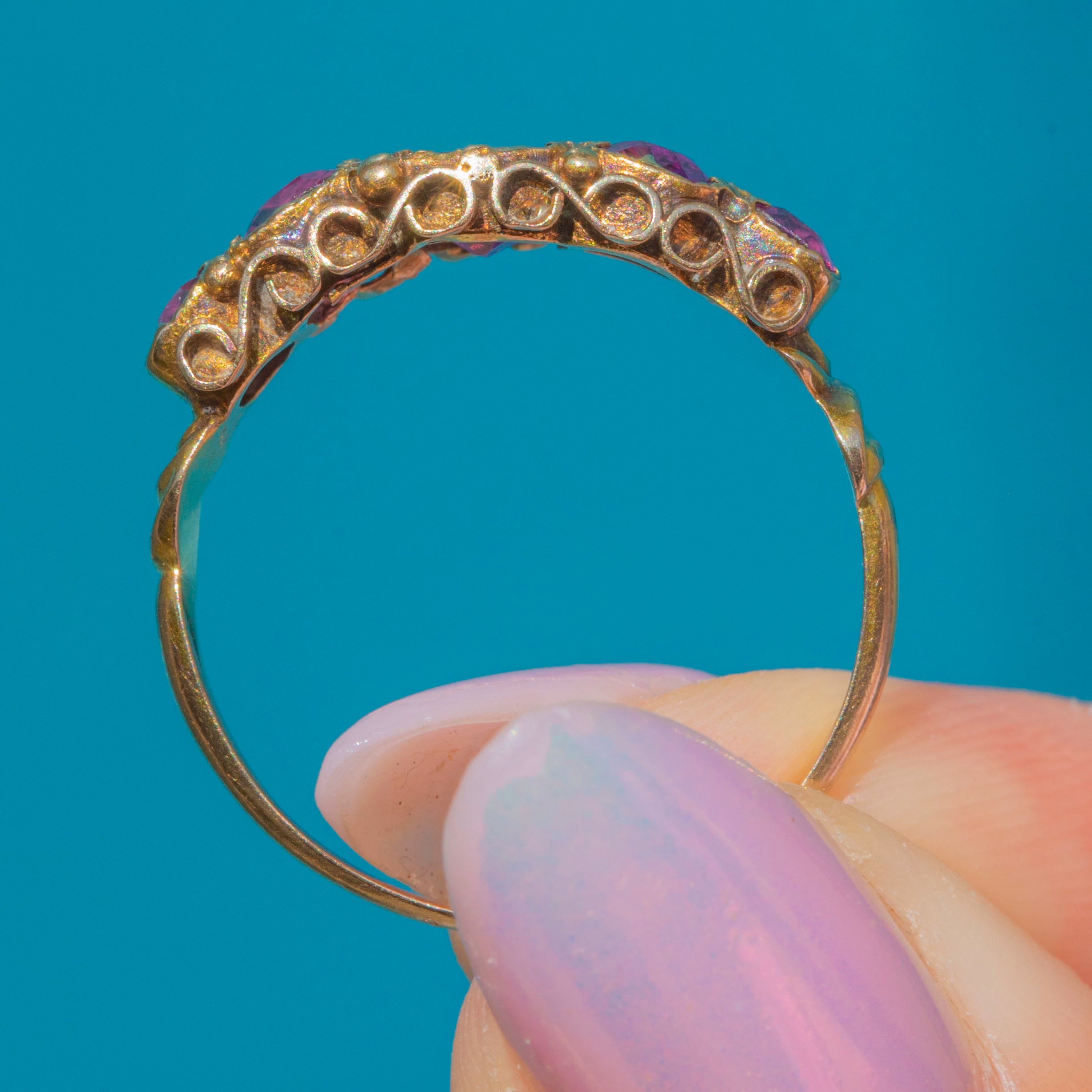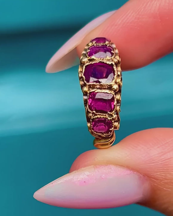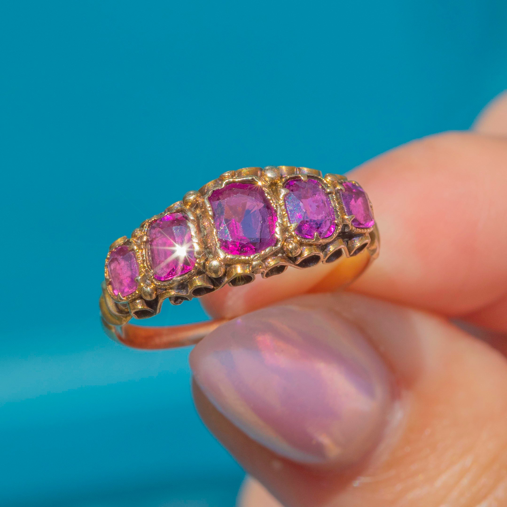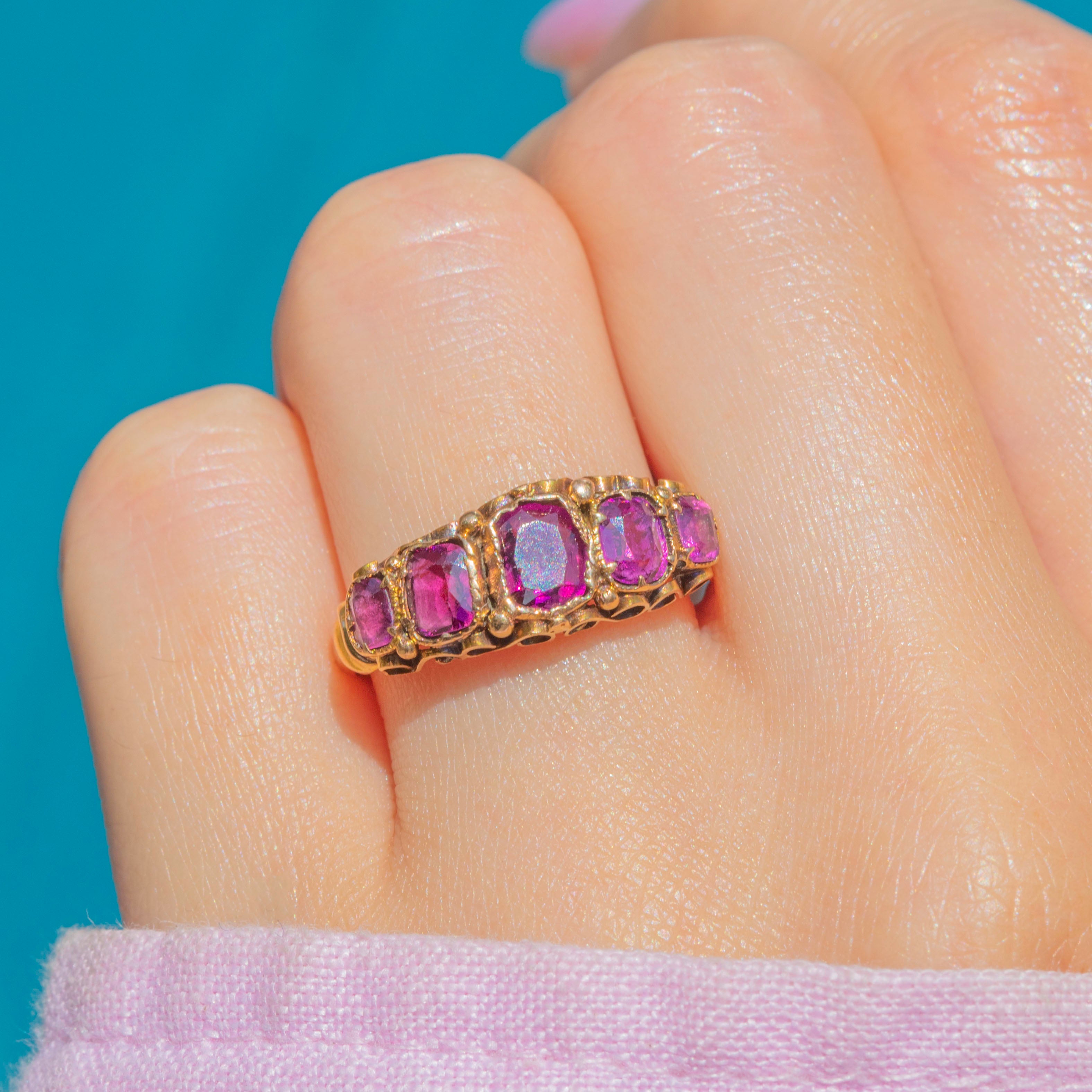 Victorian 15ct Gold Pink Rhodolite Garnet Five Stone Ring, 1.00ct Item added