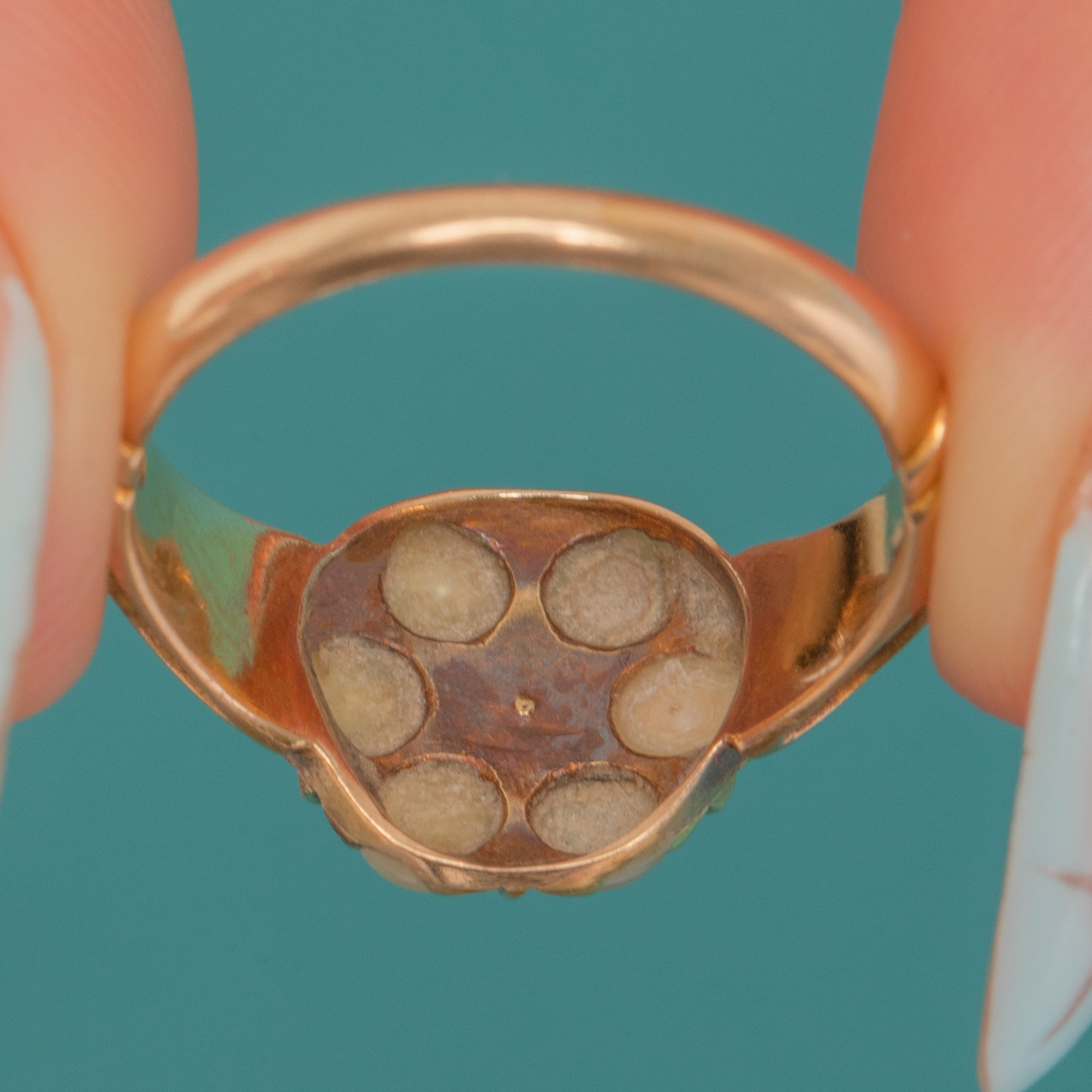 Victorian 15ct Gold Ruby Pearl Cluster Ring Item added
