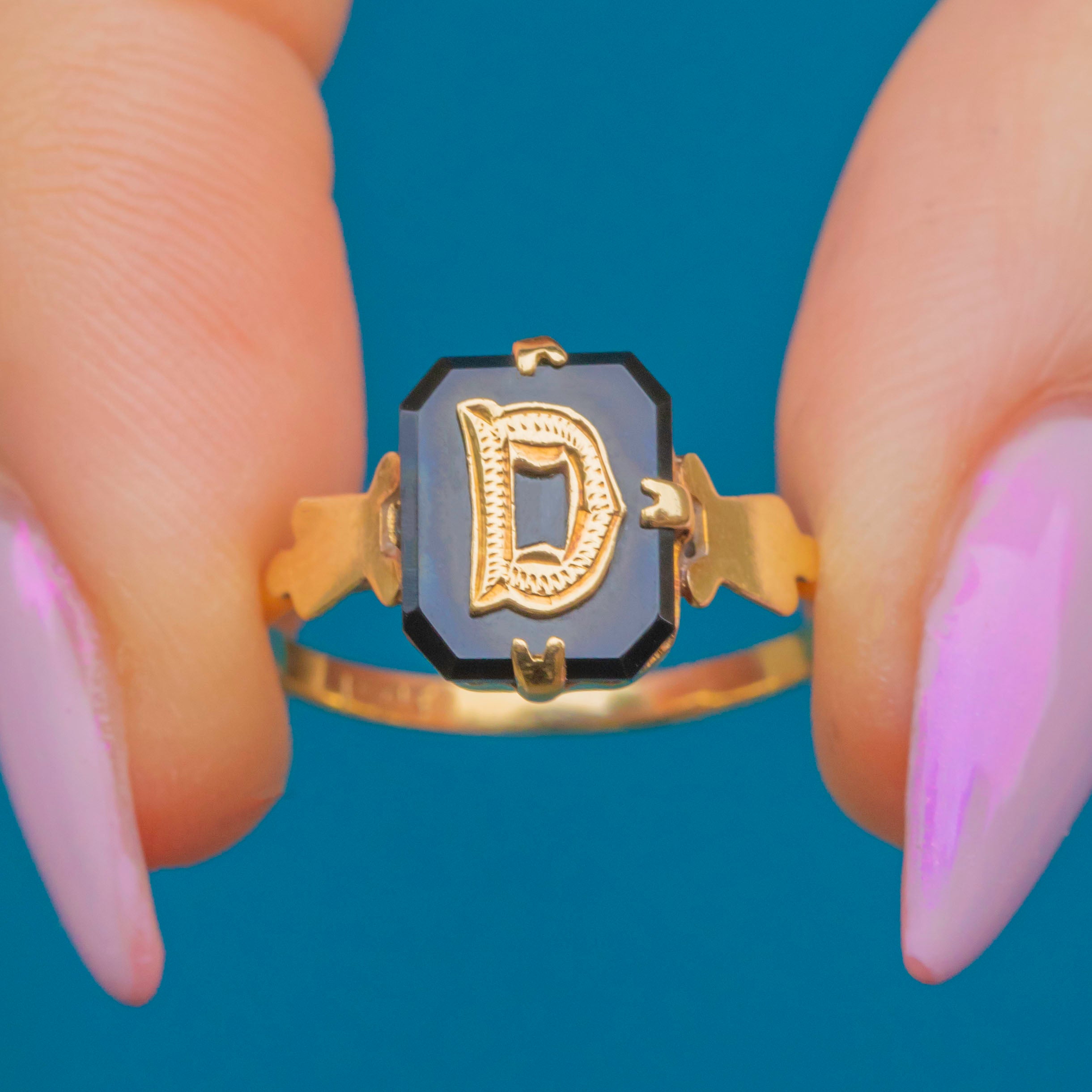Victorian 18ct Gold "D" Initial Onyx Mourning Ring