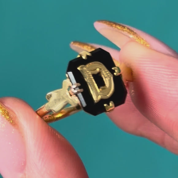 Victorian 18ct Gold "D" Initial Onyx Mourning Ring Item added
