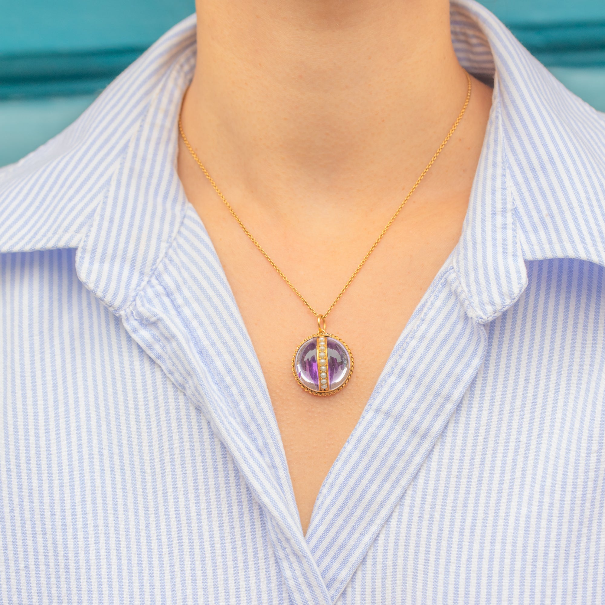 A single 2mm Pearl accents the design, adding a delicate contrast against the glowing Quartz. Bold in scale yet refined in detail, this pendant is a wonderful example of Victorian gemstone jewellery and makes a dramatic statement when worn on a fine chain or layered with other antique pieces.