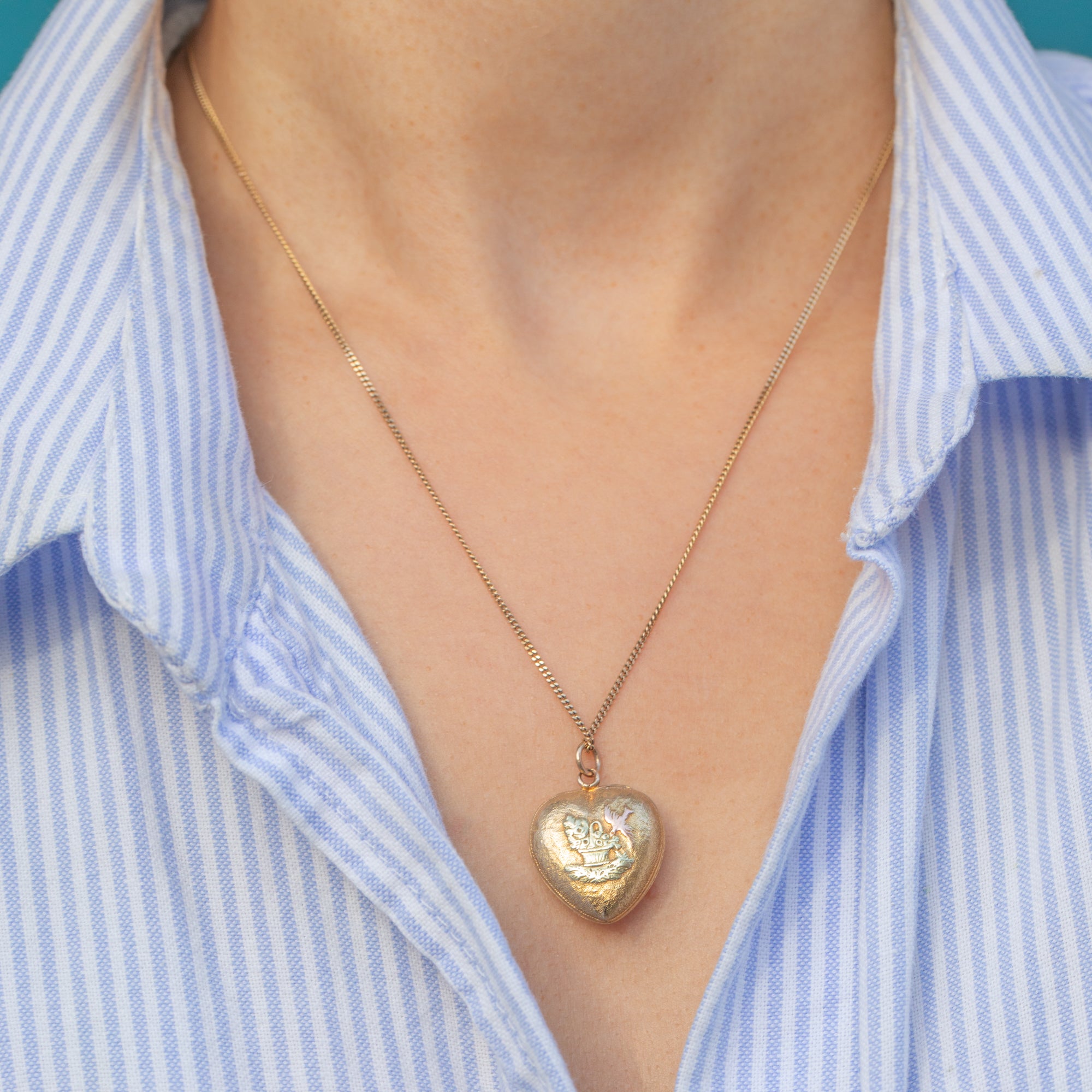 Victorian 18ct Gold Heart Locket with Bouquet & Bird, c.1870