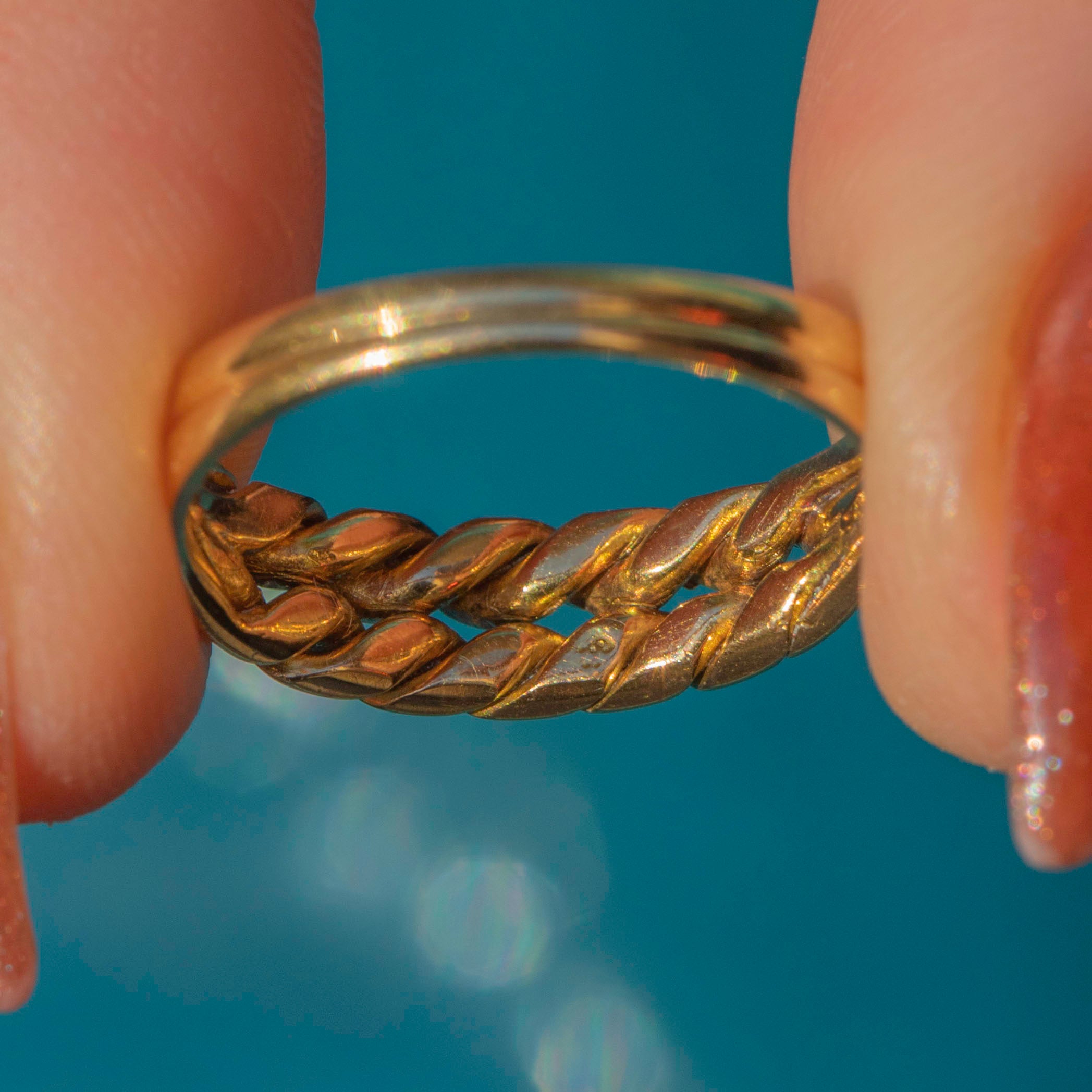 This Victorian 18ct Gold keeper ring is a beautiful solid Gold ring for everyday wear. The braided ring gives this Victorian beauty a distinctive texture, and her smooth band hugs your finger in all the right places.
