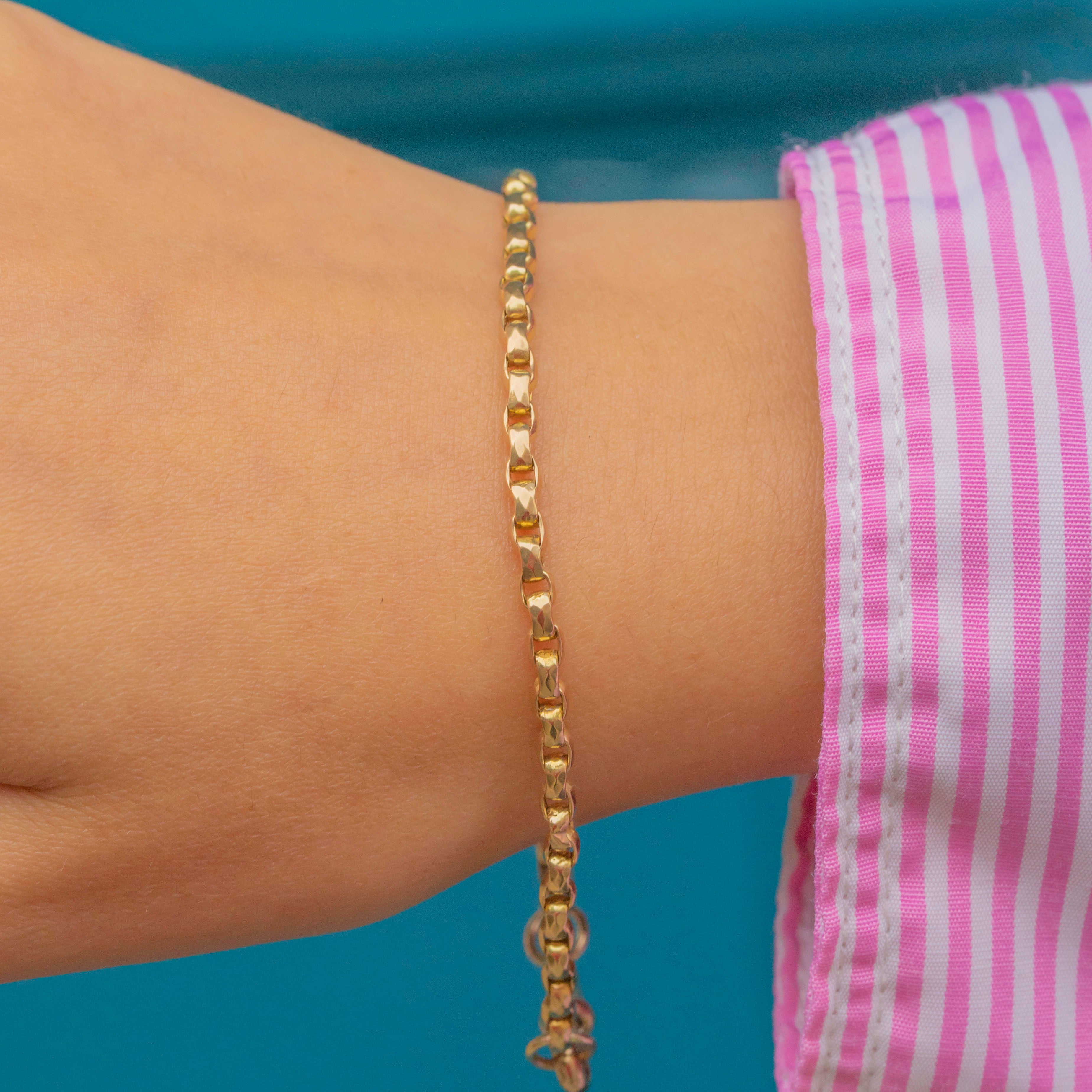 EXCELLENT: The Gold links are bright and well-preserved with a smooth finish. The dog-clip is strong and in full working order. A versatile antique bracelet in lovely condition.
