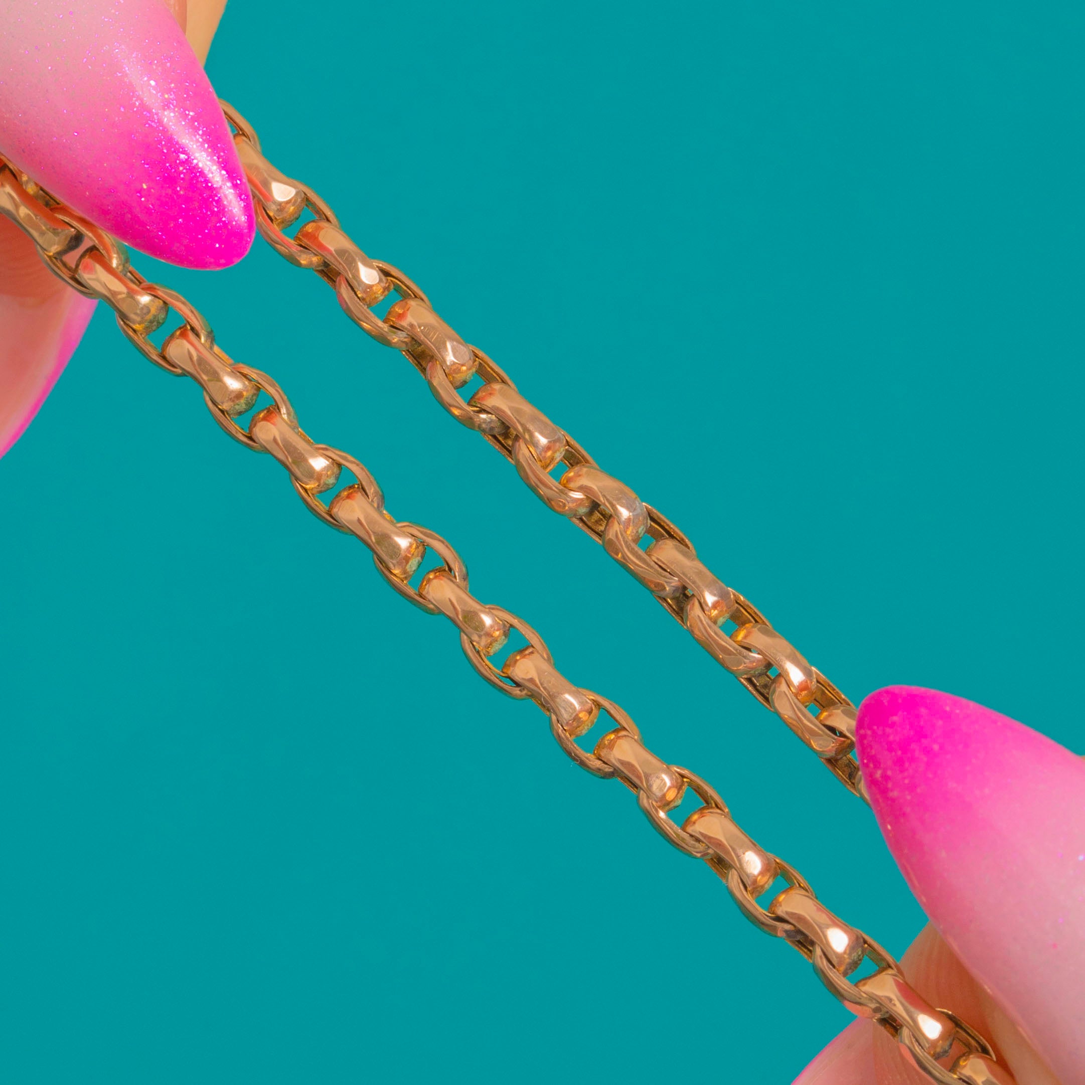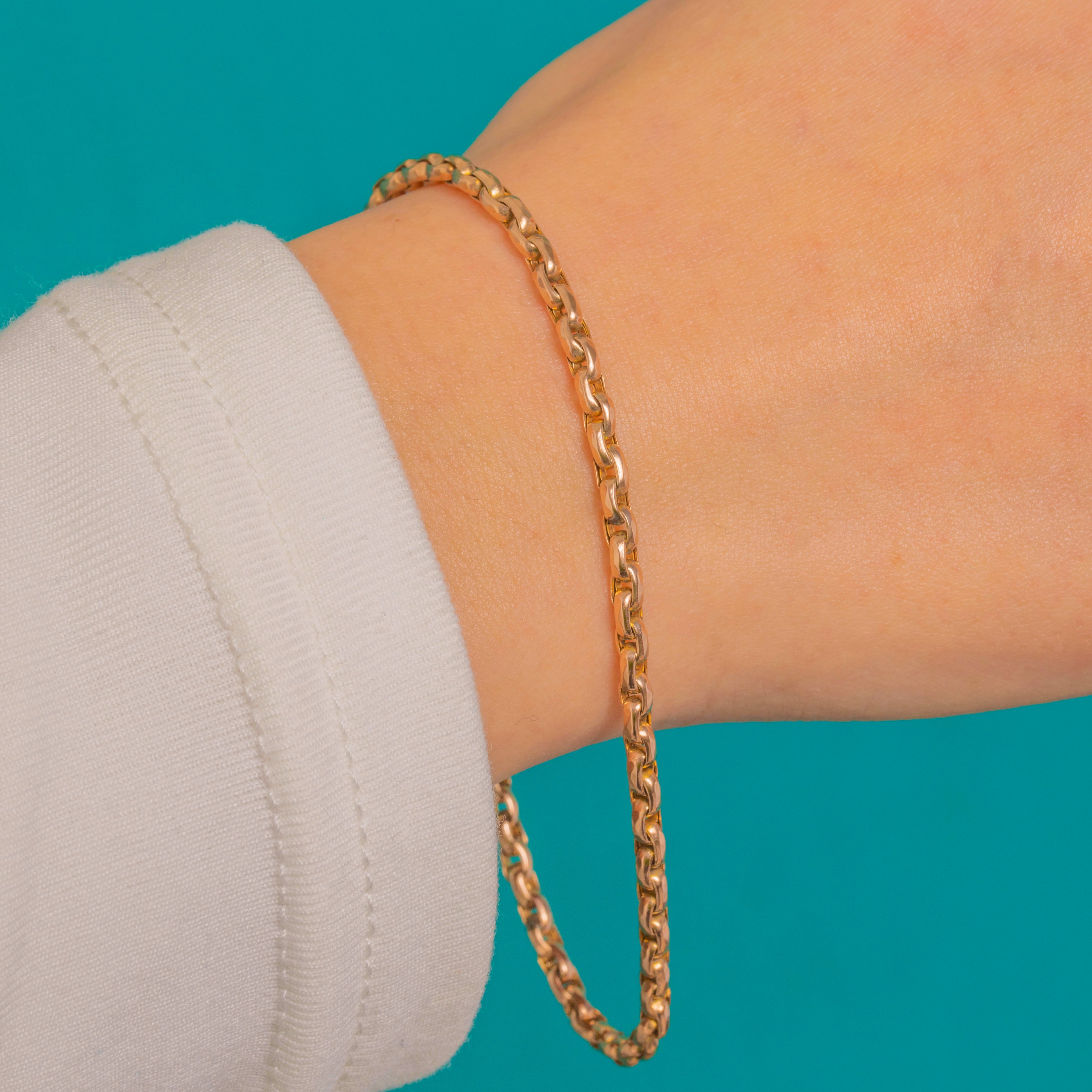 Understated and irresistibly tactile, this Victorian belcher bracelet brings a subtle shimmer to every gesture. Each rounded-rectangular link is neatly faceted and highly polished, creating a refined play of light with a warm Golden glow.