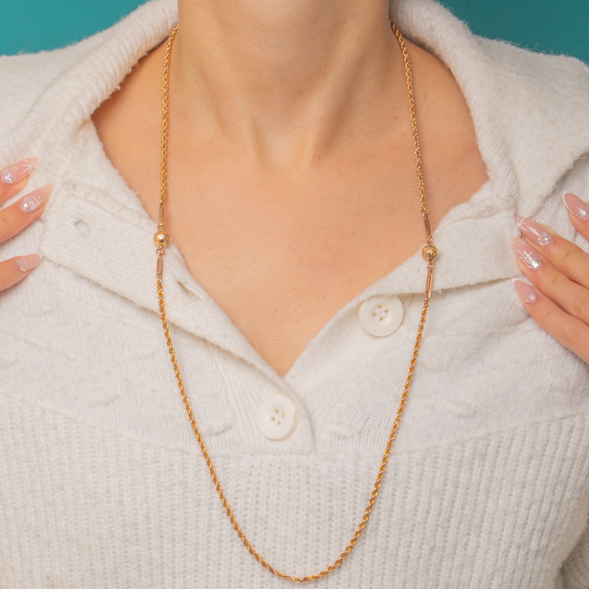 Finished with a swivel dog‑clip charm holder stamped “9C”, it’s perfect for styling with a locket, pendant or charm—or simply worn solo for a whisper of opulence. A versatile 27" length makes it effortless to layer, while the articulated construction adds movement and light.