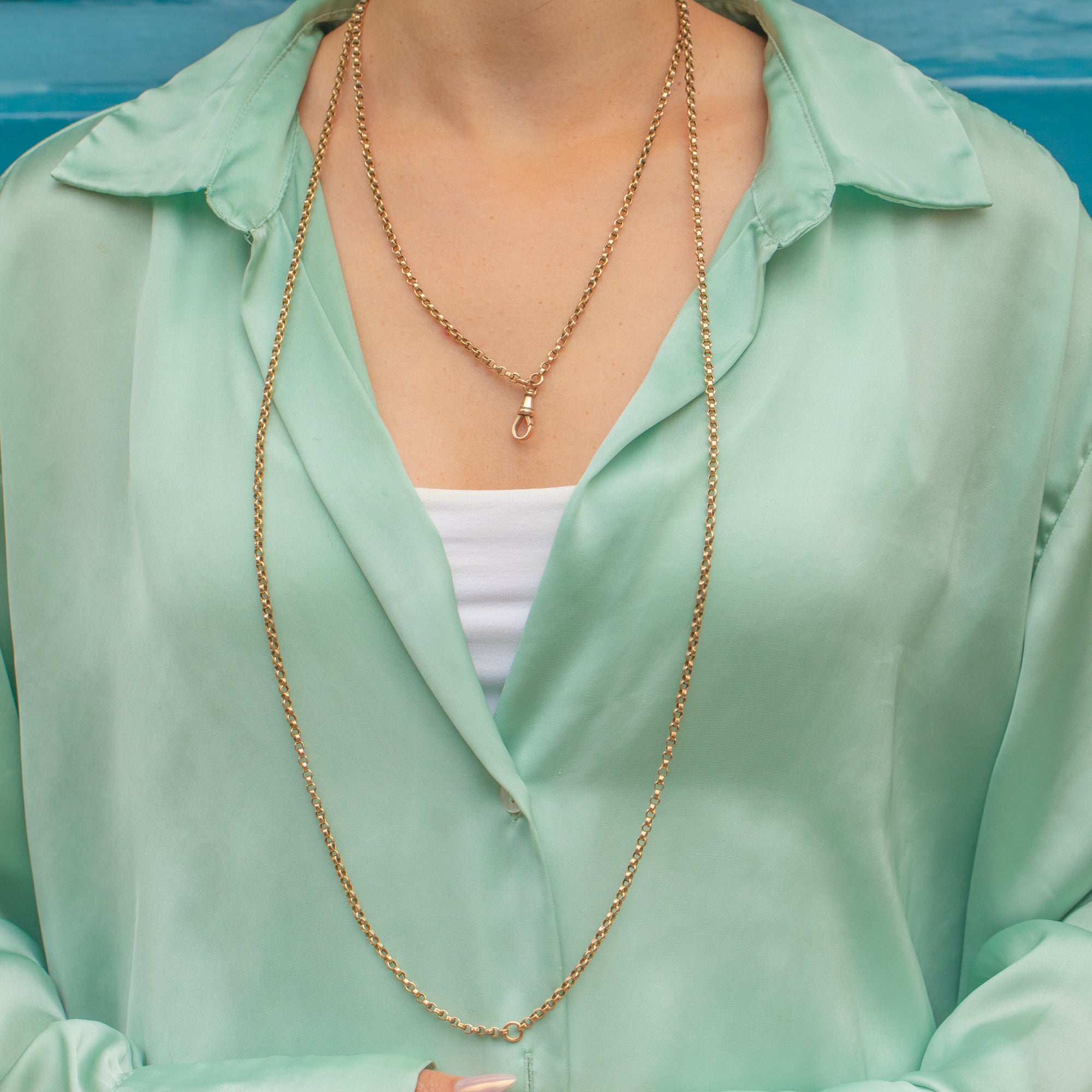 Designed with a fixed dog clip and an integrated jump ring, this versatile piece can be worn at its full 54" length or secured at 27" for a doubled look.
