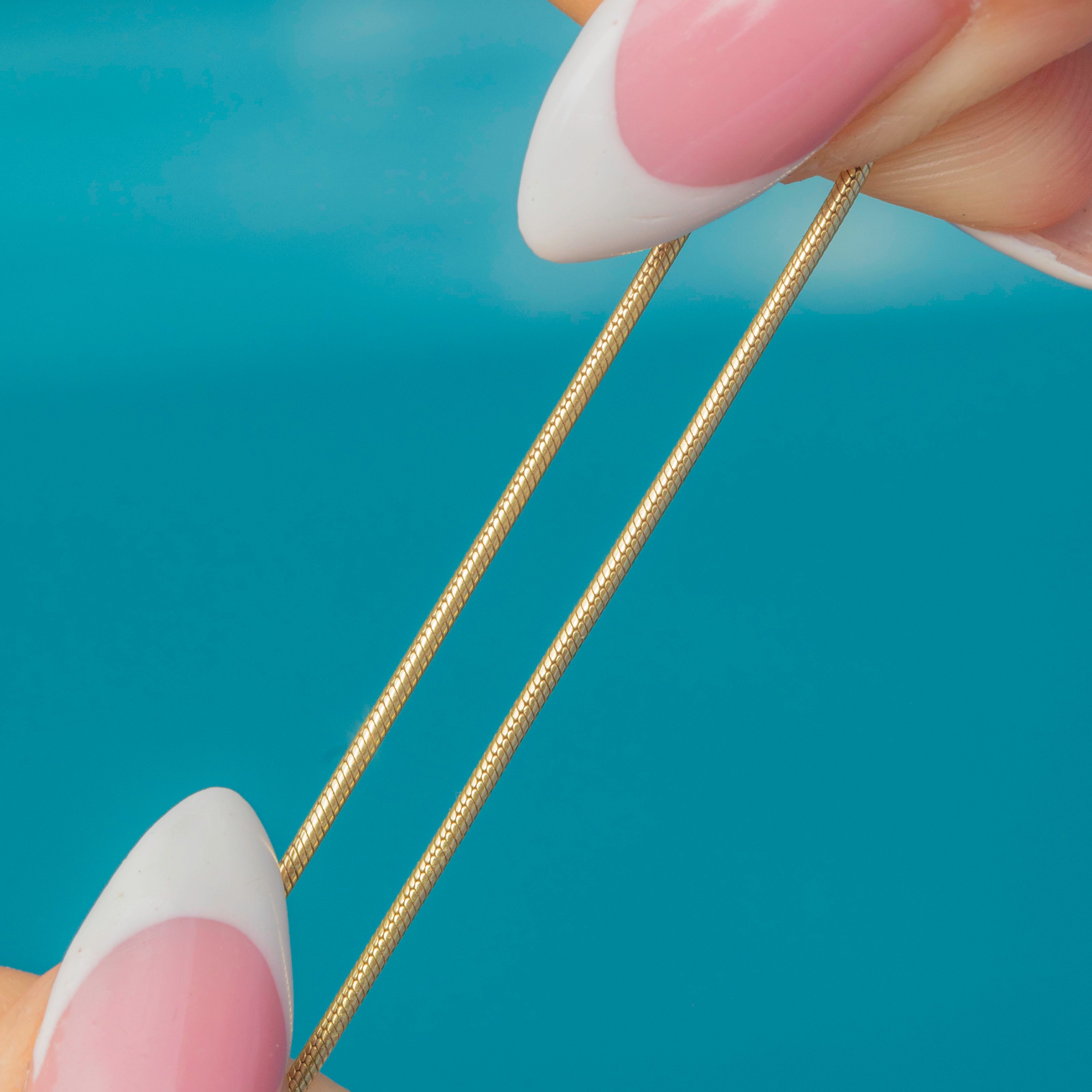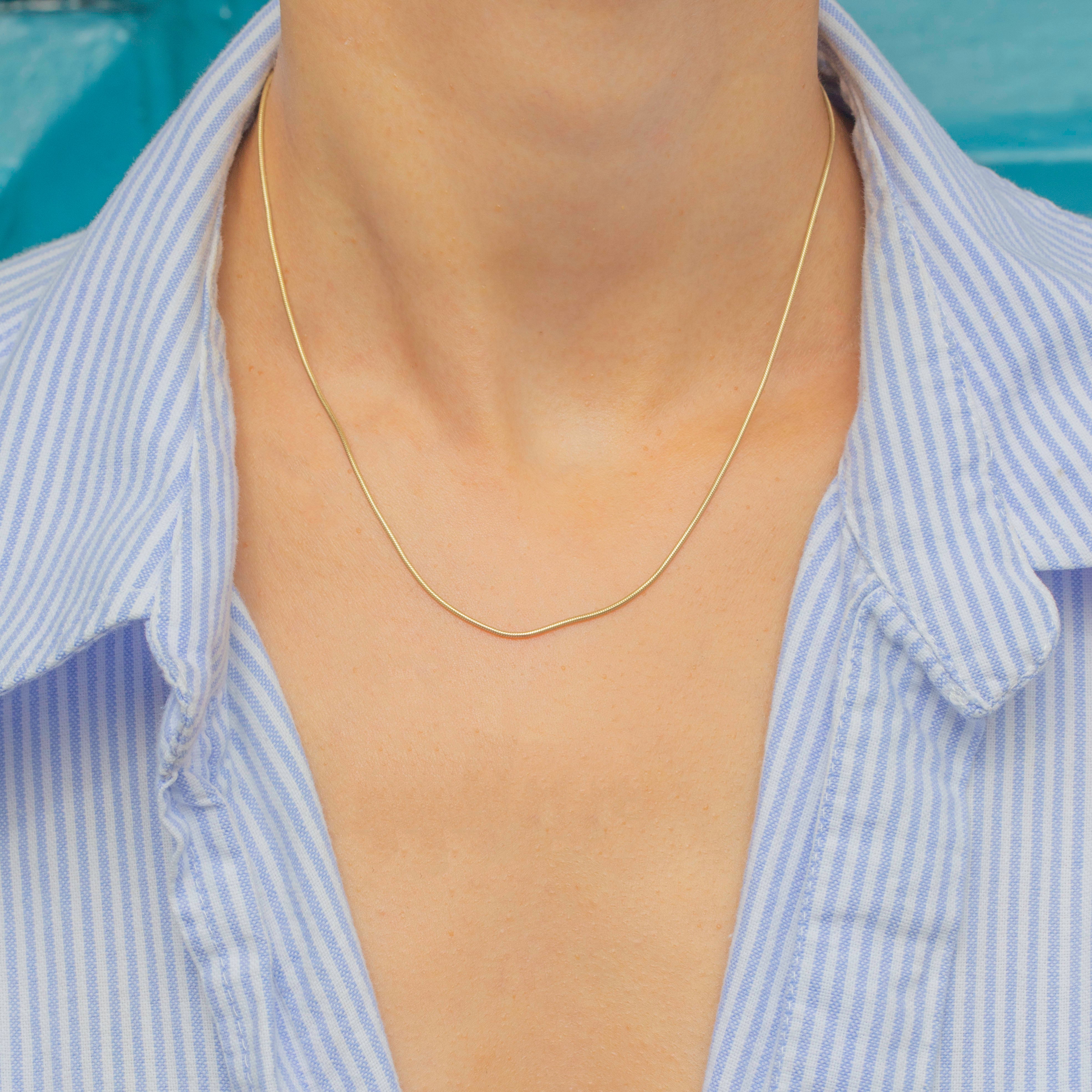 A refined Victorian snake chain crafted in warm 9ct Gold. The smooth, flexible design flows beautifully around the neck, catching the light with a subtle golden gleam. At 3.6g, it offers a delicate yet durable feel, perfect for wearing alone or paired with your favourite antique pendant.