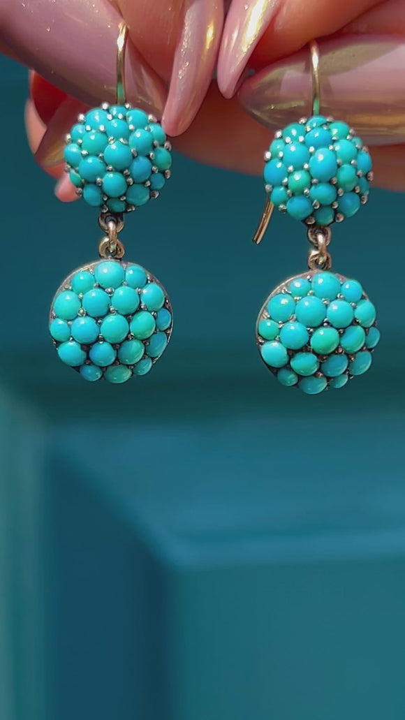 Victorian 9ct Gold Turquoise Bombé Drop Earrings