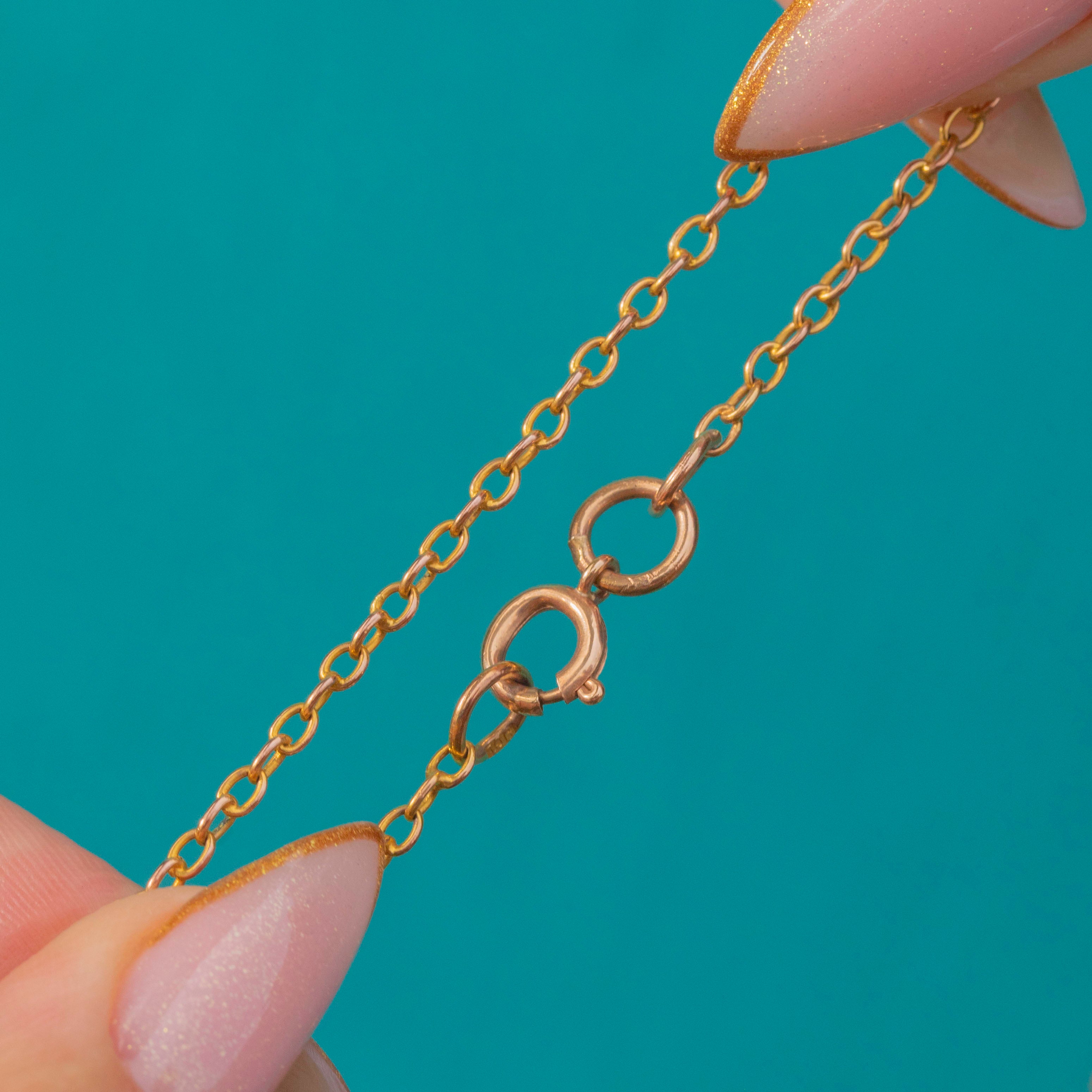 EXCELLENT: The chain is in exceptional condition for its age. The Gold has a rich antique patina, the Pearls retain their soft lustre, and the Turquoise stones remain bright and secure throughout.