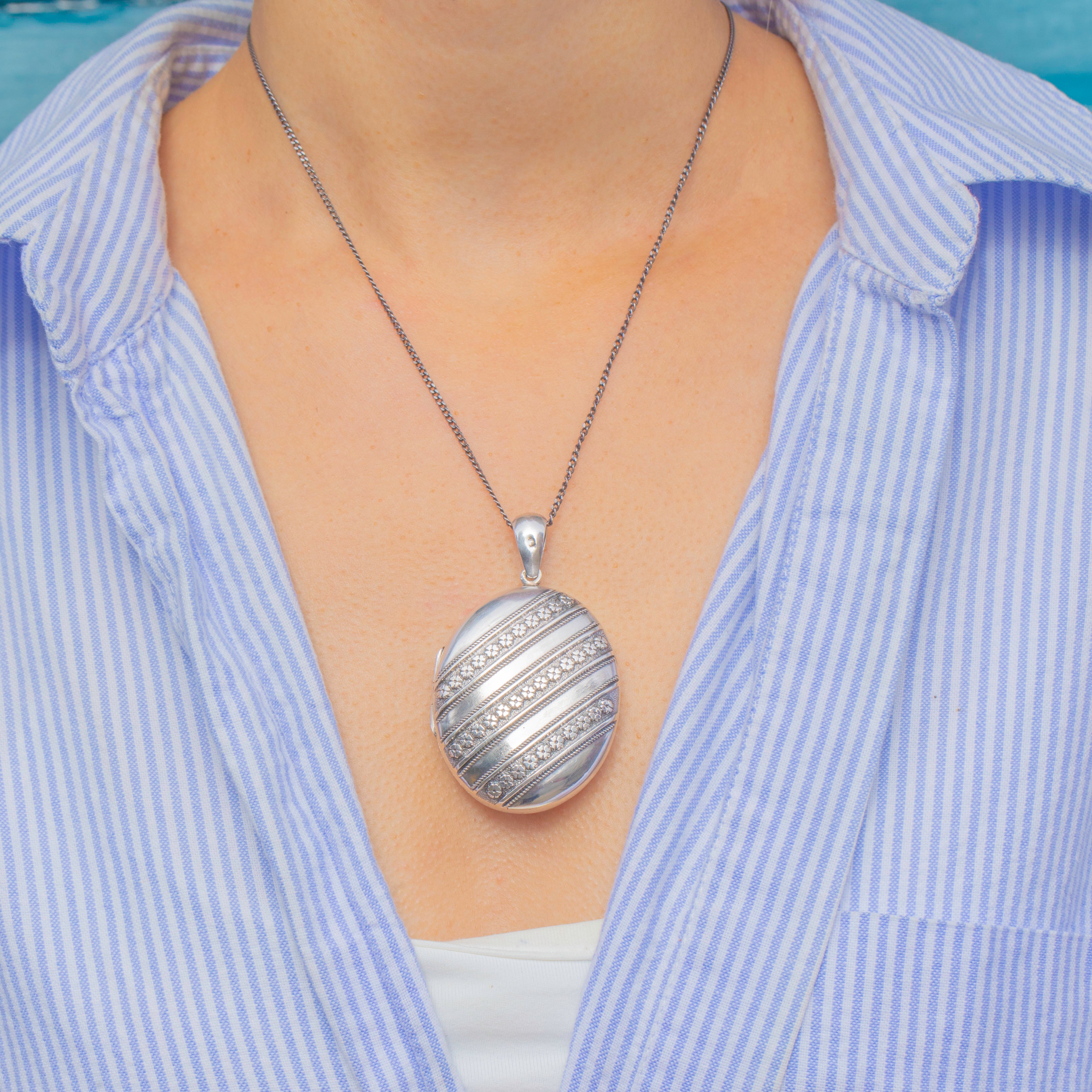 Providing exceptional coverage across your décolletage, the glossy Sterling Silver locket opens to reveal space for a cherished photograph or memento allowing you to keep a loved one close to your heart.
