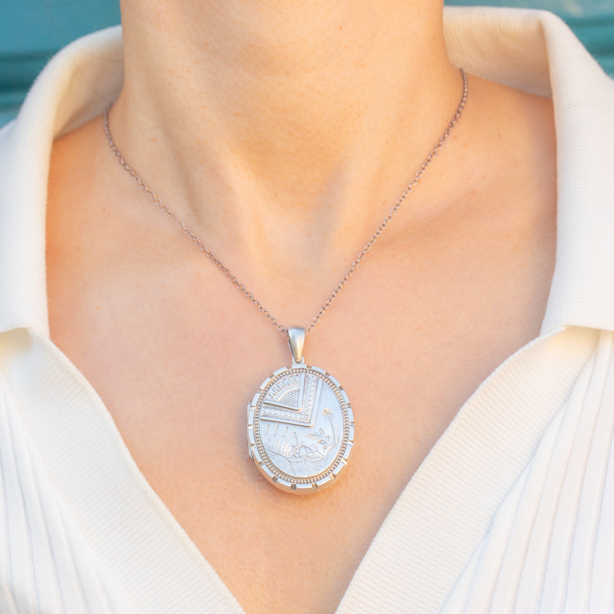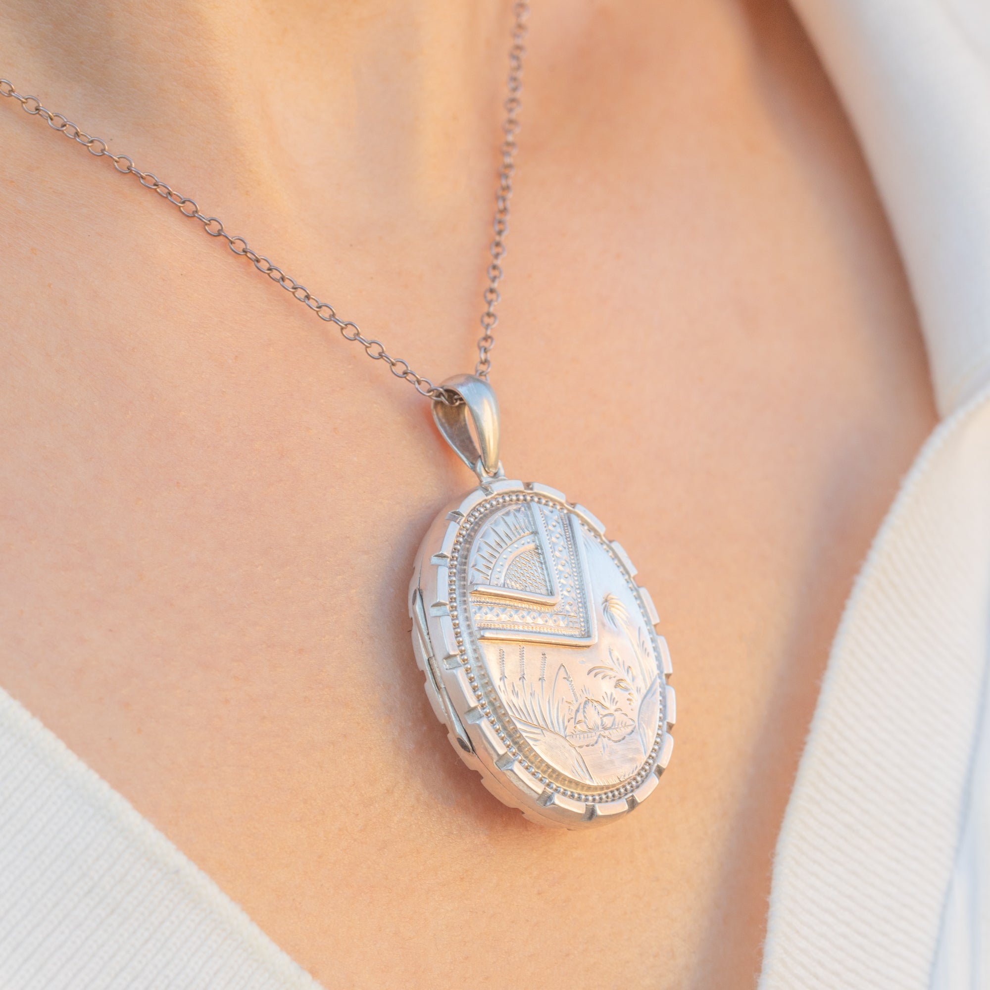 Victorian Aesthetic Silver Oval Locket Item added