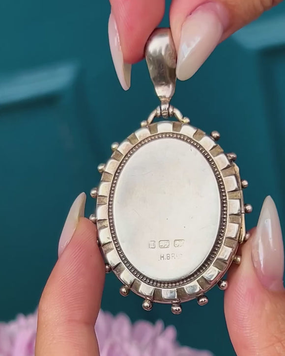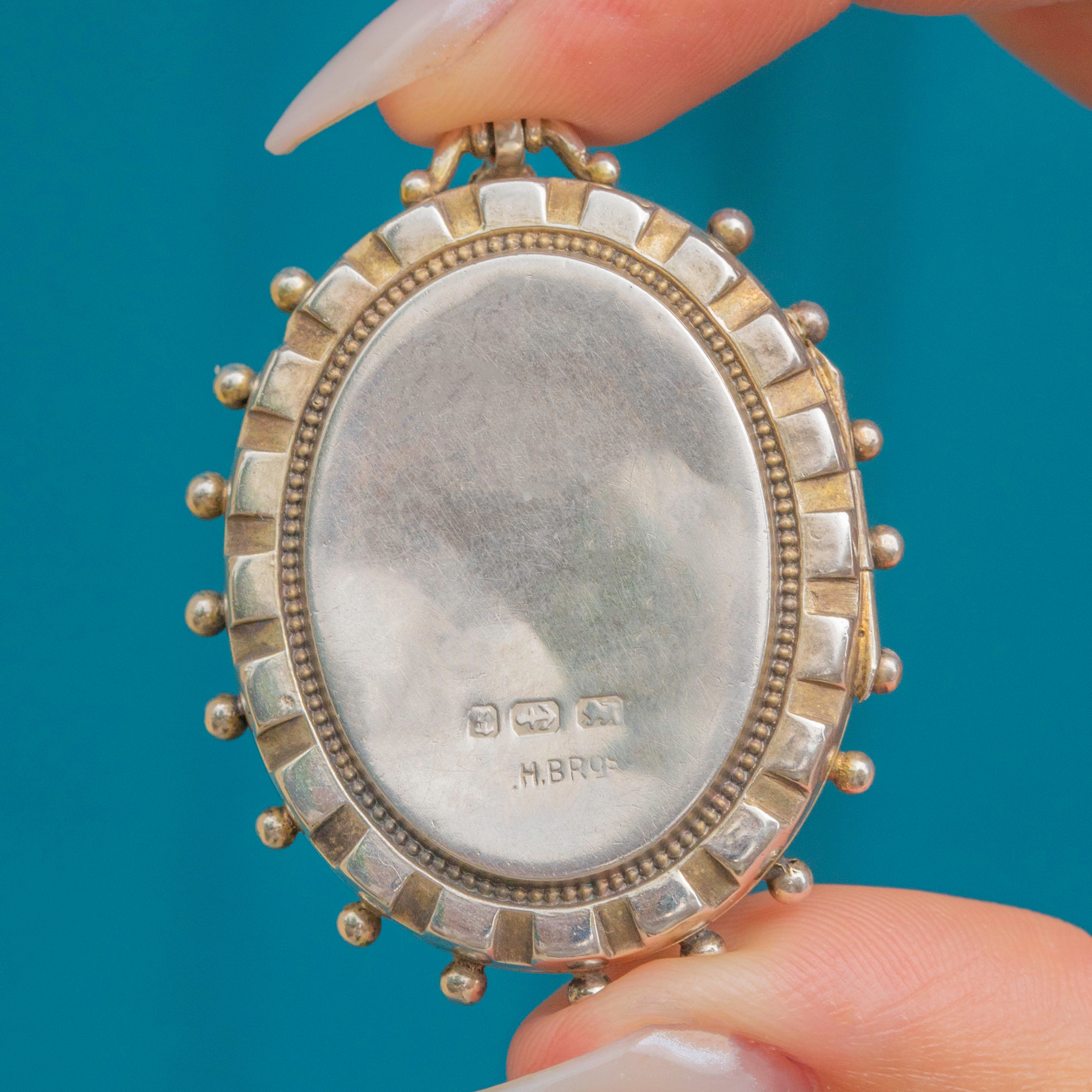 VERY GOOD. This Victorian aesthetic locket is in very good condition with a full set of hallmarks and a clean, beautifully engraved front. The beaded edge has remained in fab condition, with only one bearing some minor wear. The back of the piece has a few dings, commensurate with age. The inside of the locket doesn't have any frames, but you can still place photos inside when cut to the right size.