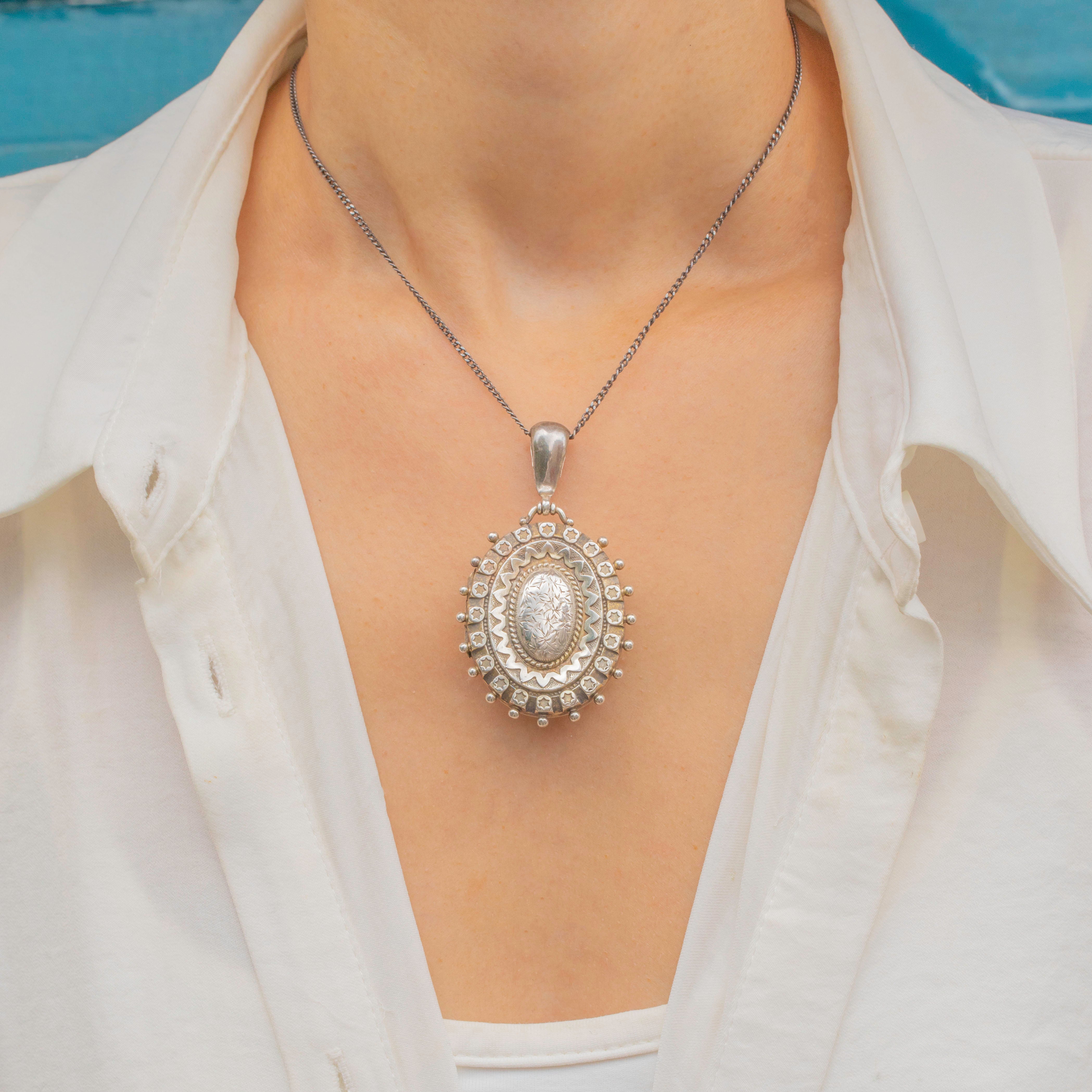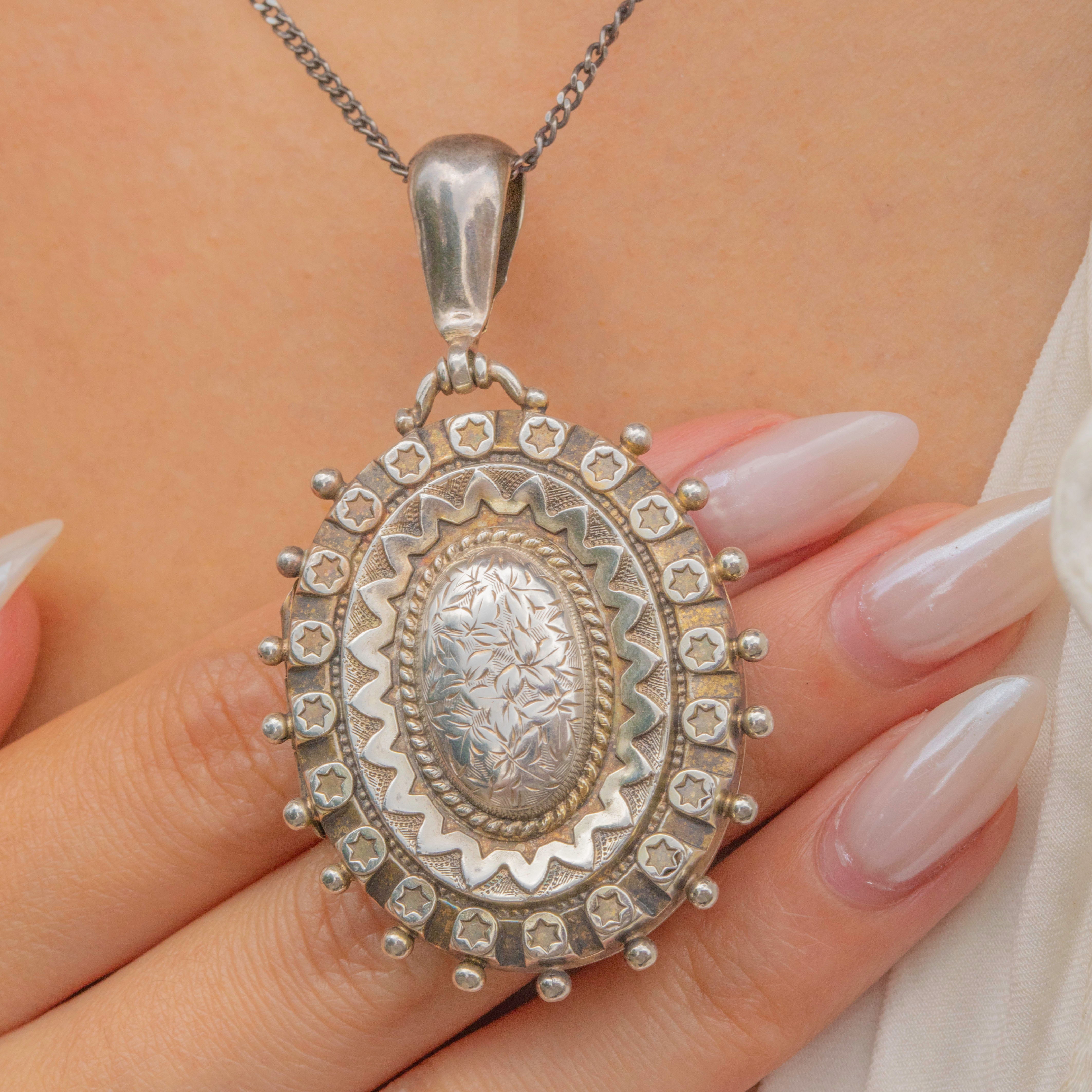 Victorian Aesthetic Silver Star Engraved Locket c.1885, Beaded Edge Item added