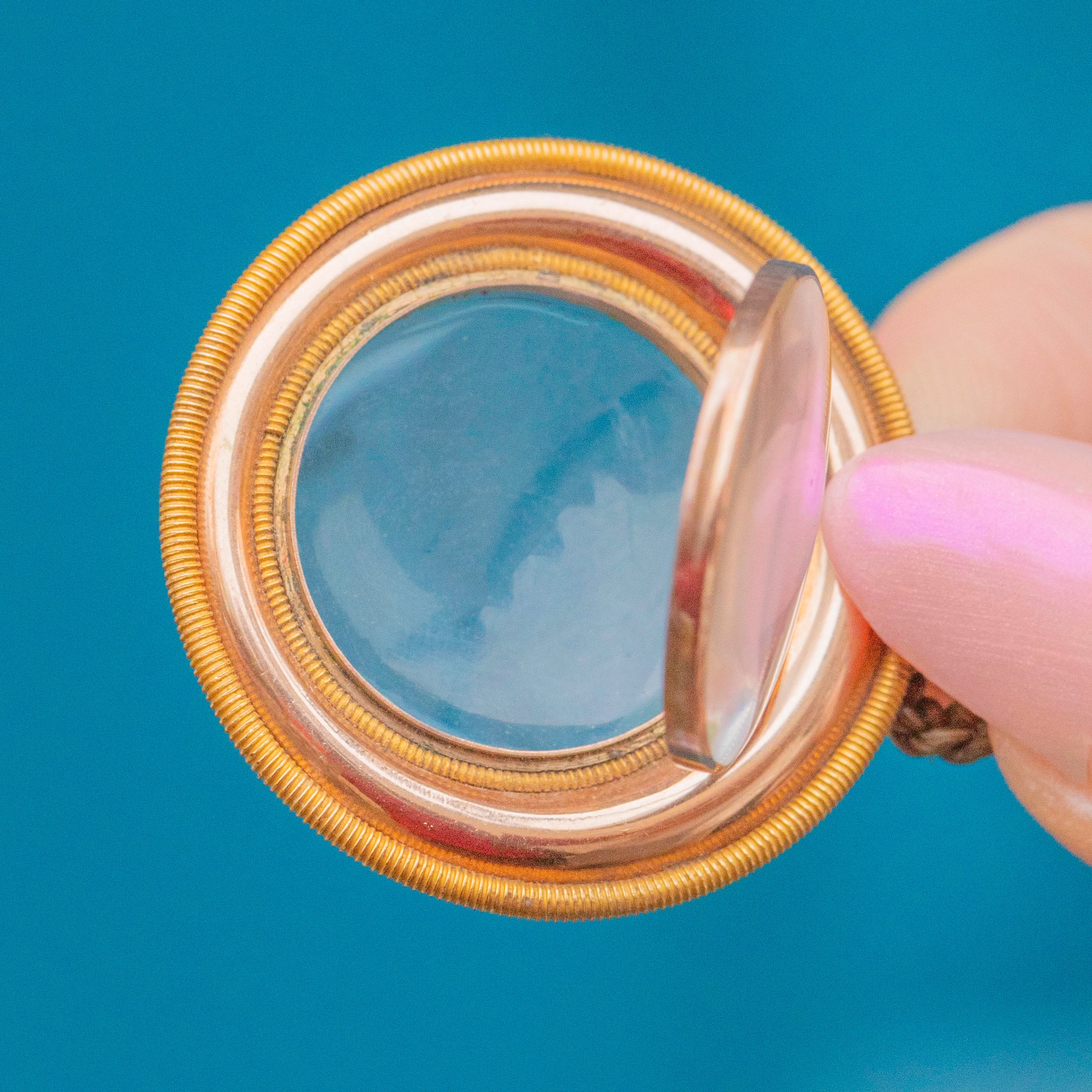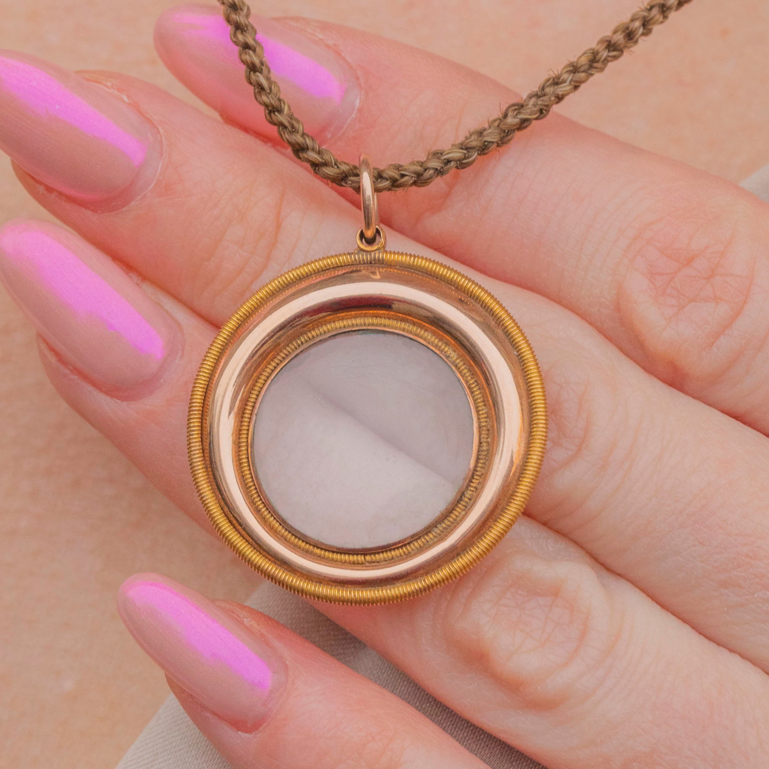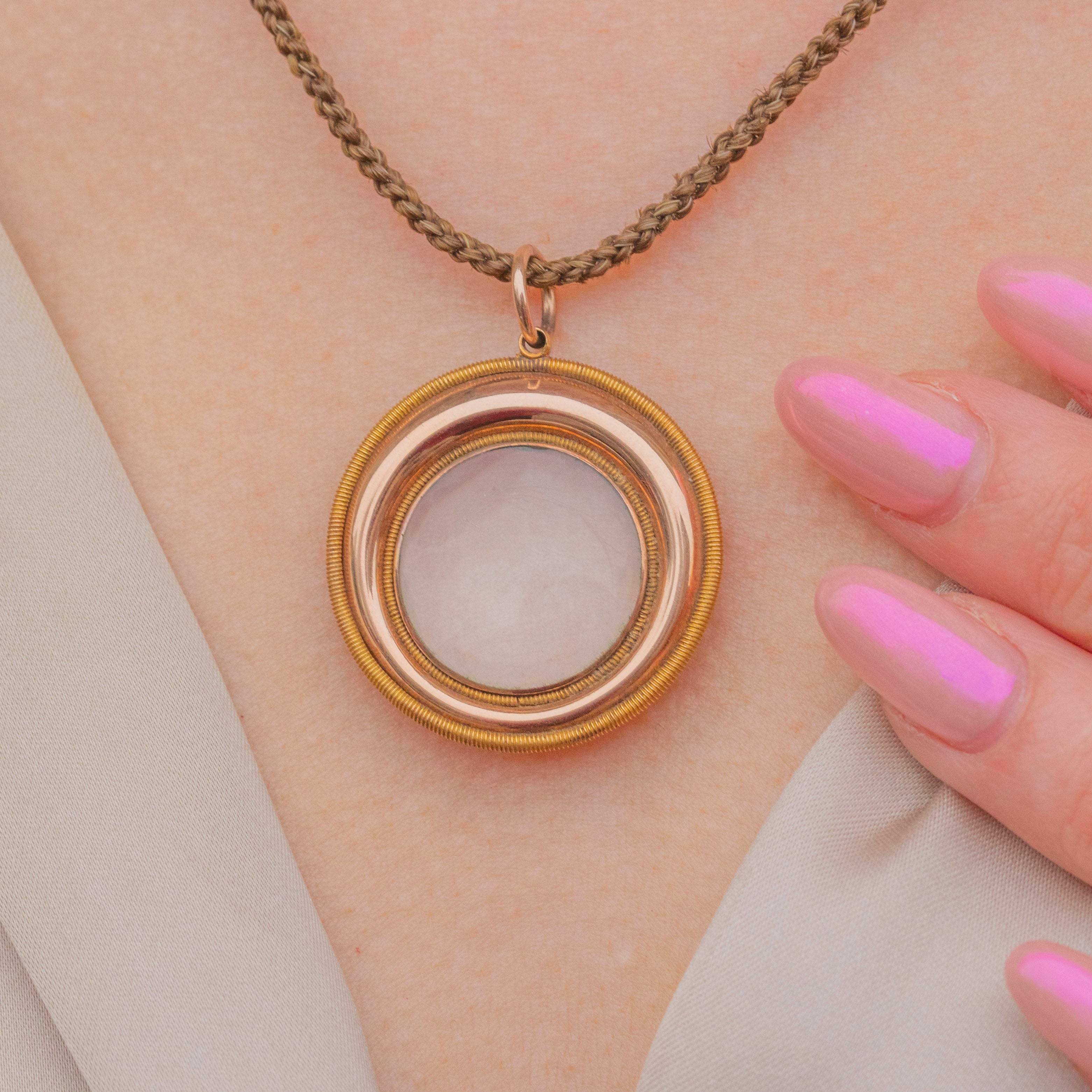 MATERIALS: 15ct Gold Locket with 18ct Gold outer rim, 15ct Gold Clasp, Woven Hair.