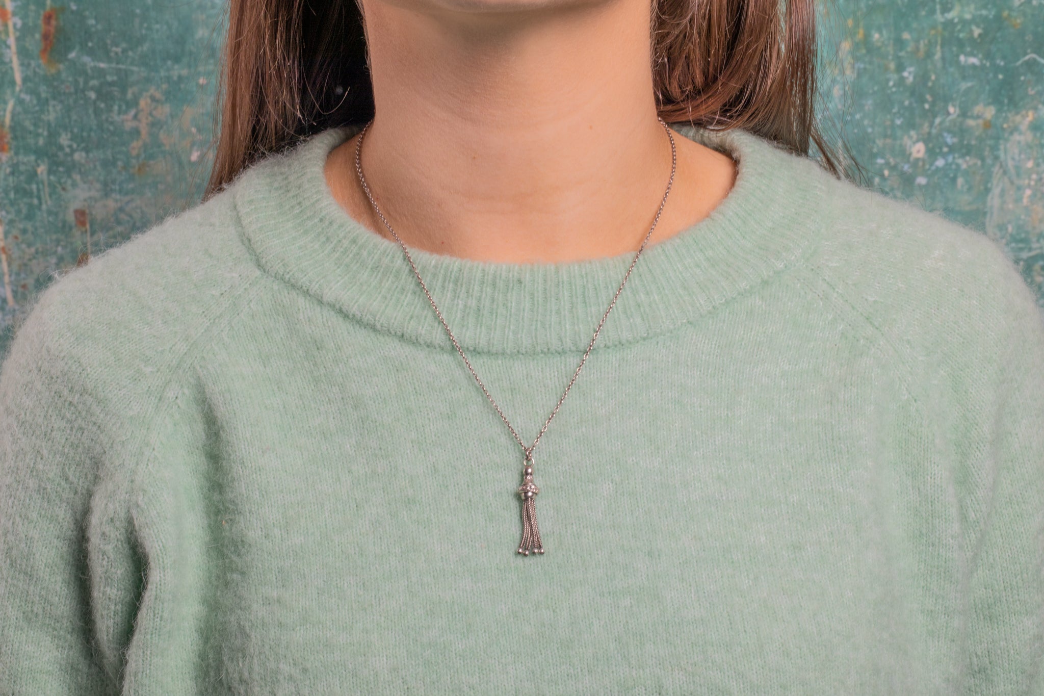 This Victorian Silver tassel pendant is so sweet and would certainly be a fun addition to your antique jewellery collection! Dainty yet perfectly formed, she boasts four slinky tassels which elegantly suspend from her ornate Silver top.
