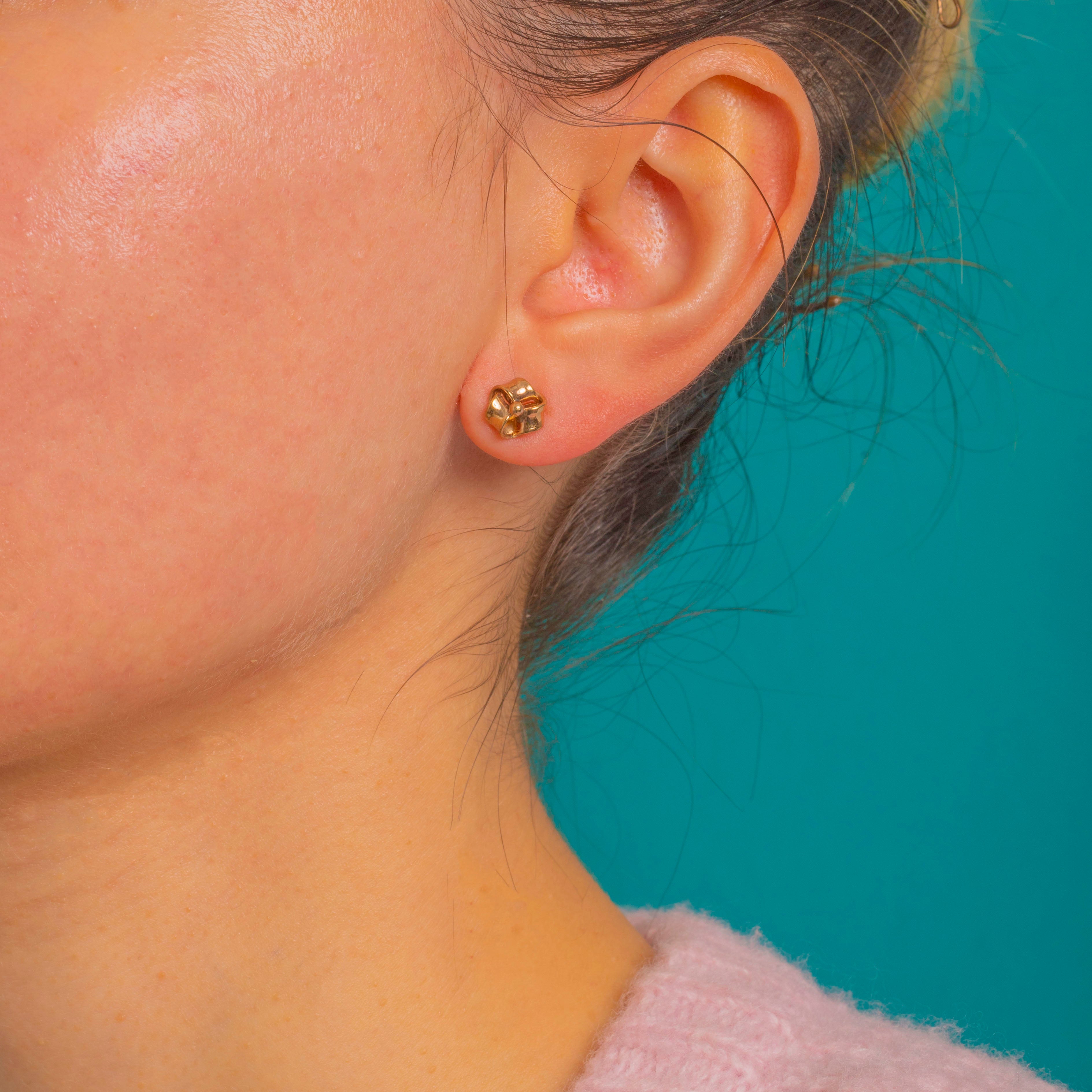 Compact three‑dimensional knot stud in warm 9ct Yellow Gold, formed into a folded three‑petal ribbon motifs.  These cute vintage studs catch the light wonderfully, and bring a touch of simple elegance to an outfit.