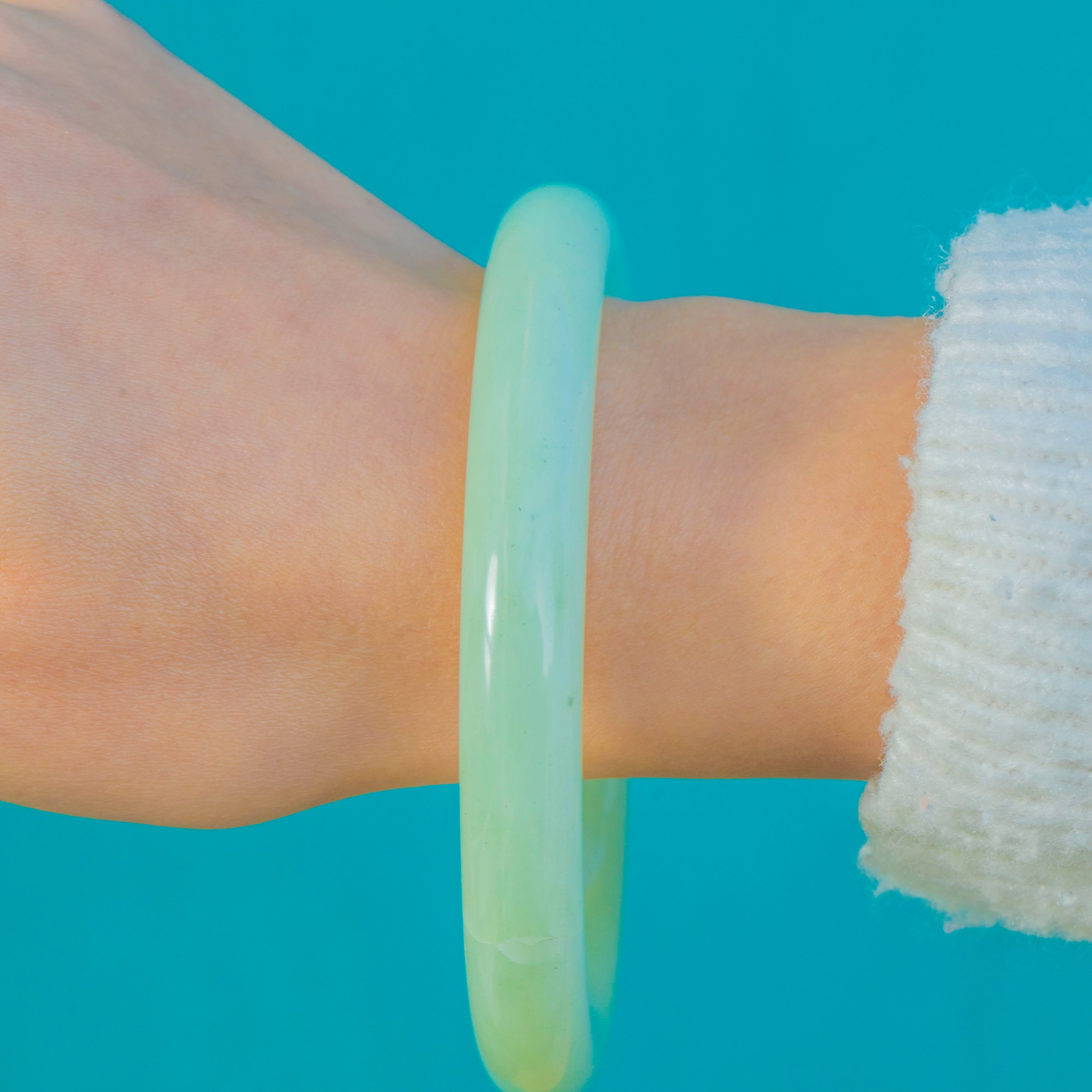 Jade bangles have long been worn for protection, harmony and good fortune, and this piece has a timeless simplicity that works effortlessly with both modern and antique jewellery.