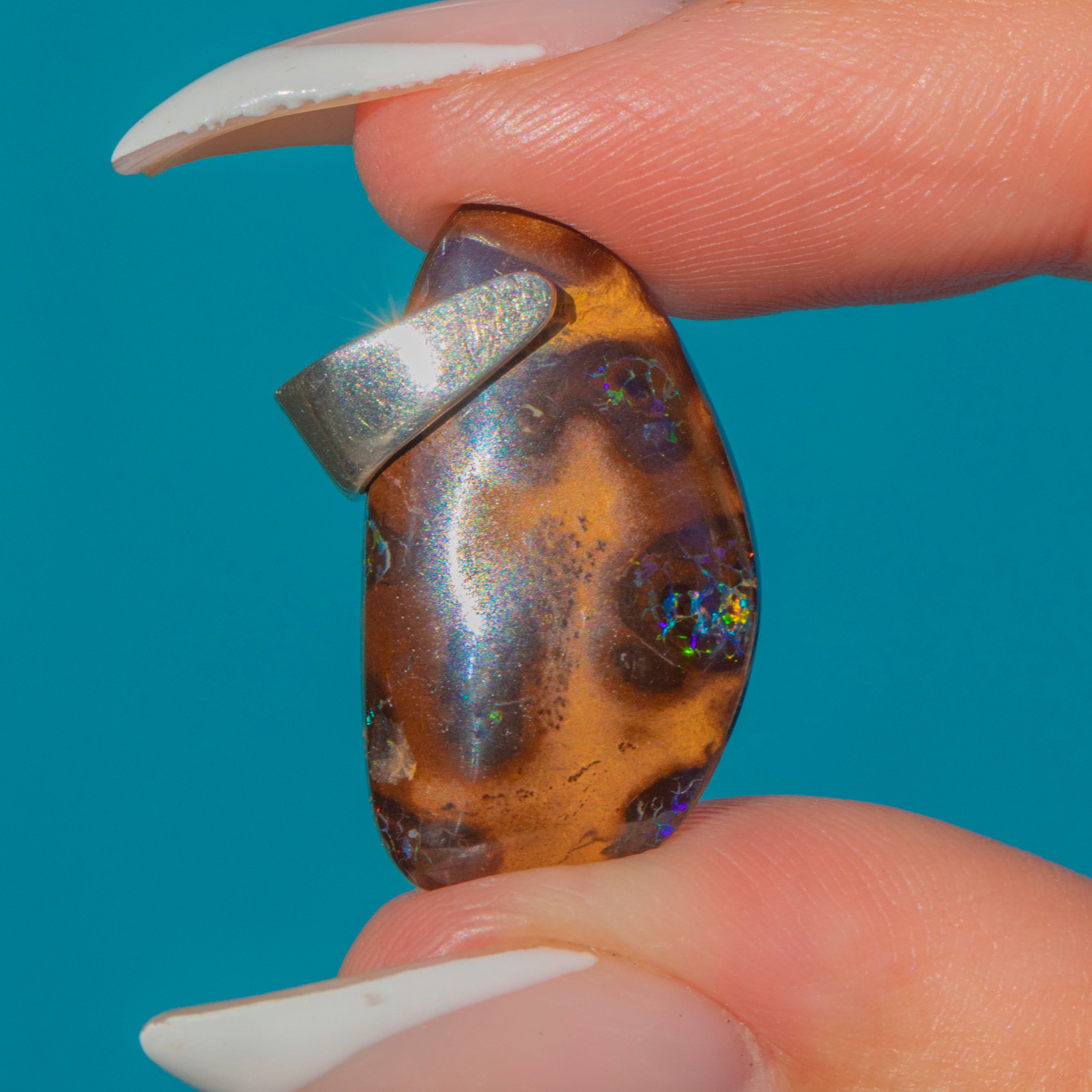 MEASUREMENTS: Opal pendant measures 23mm long x 13mm wide x 5.5mm deep.