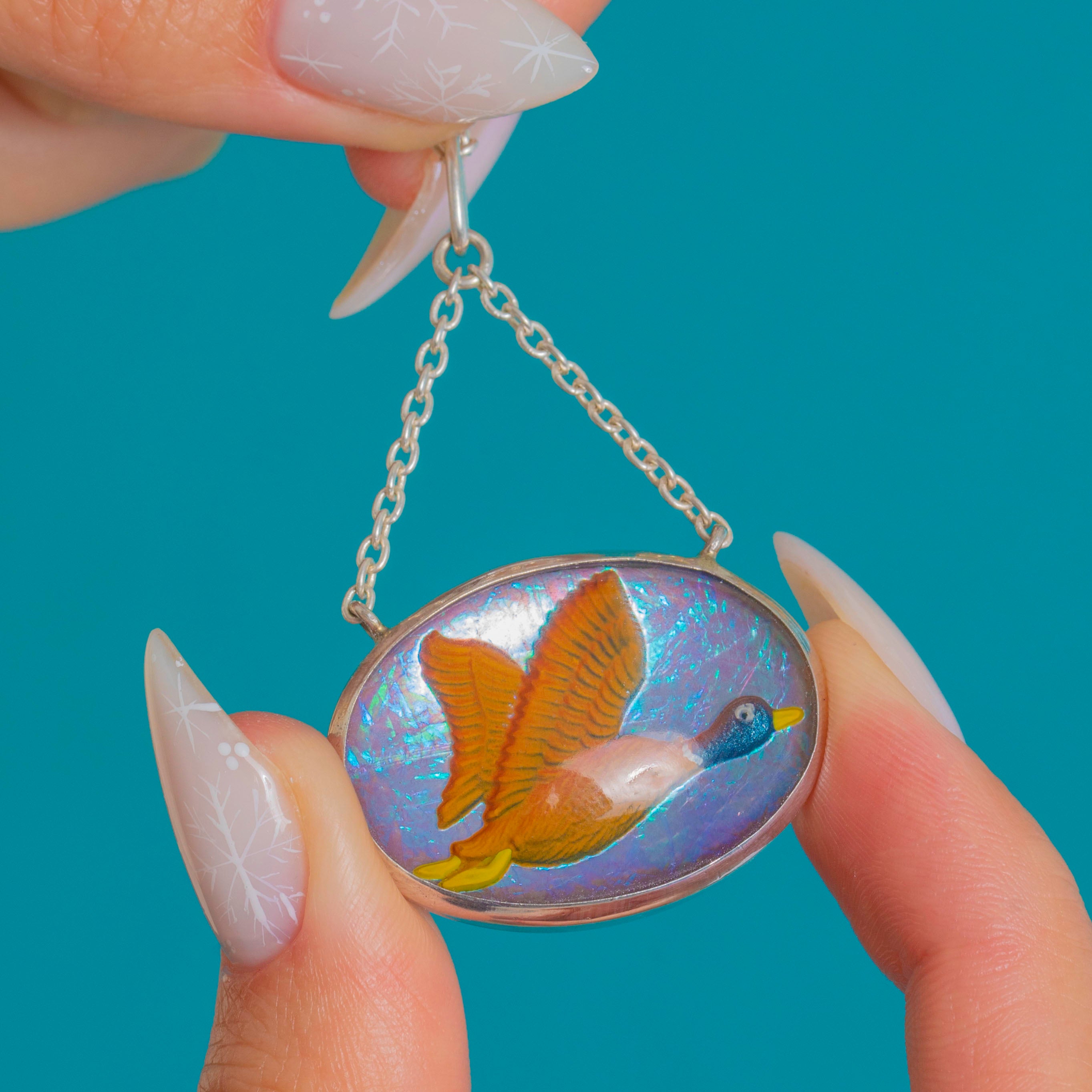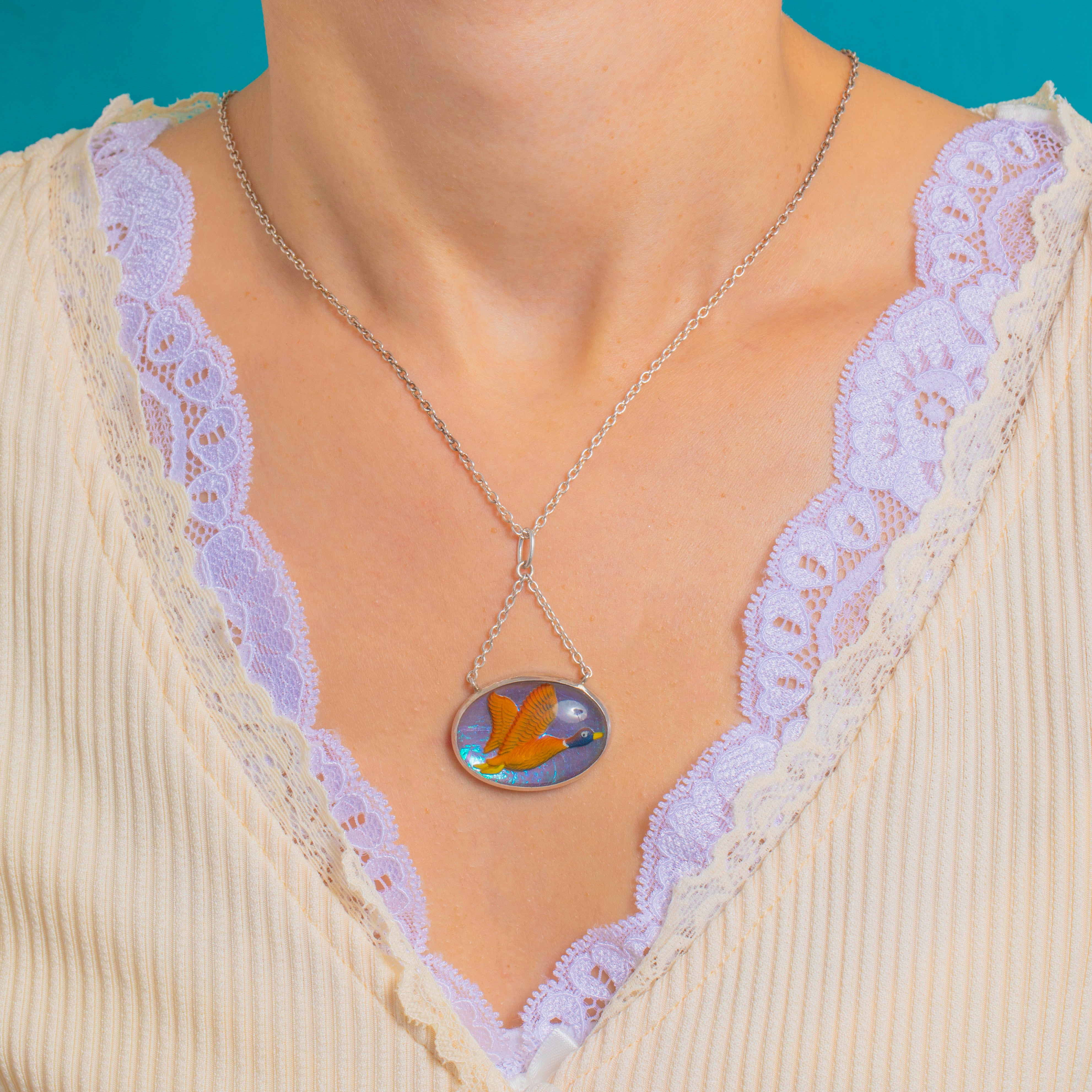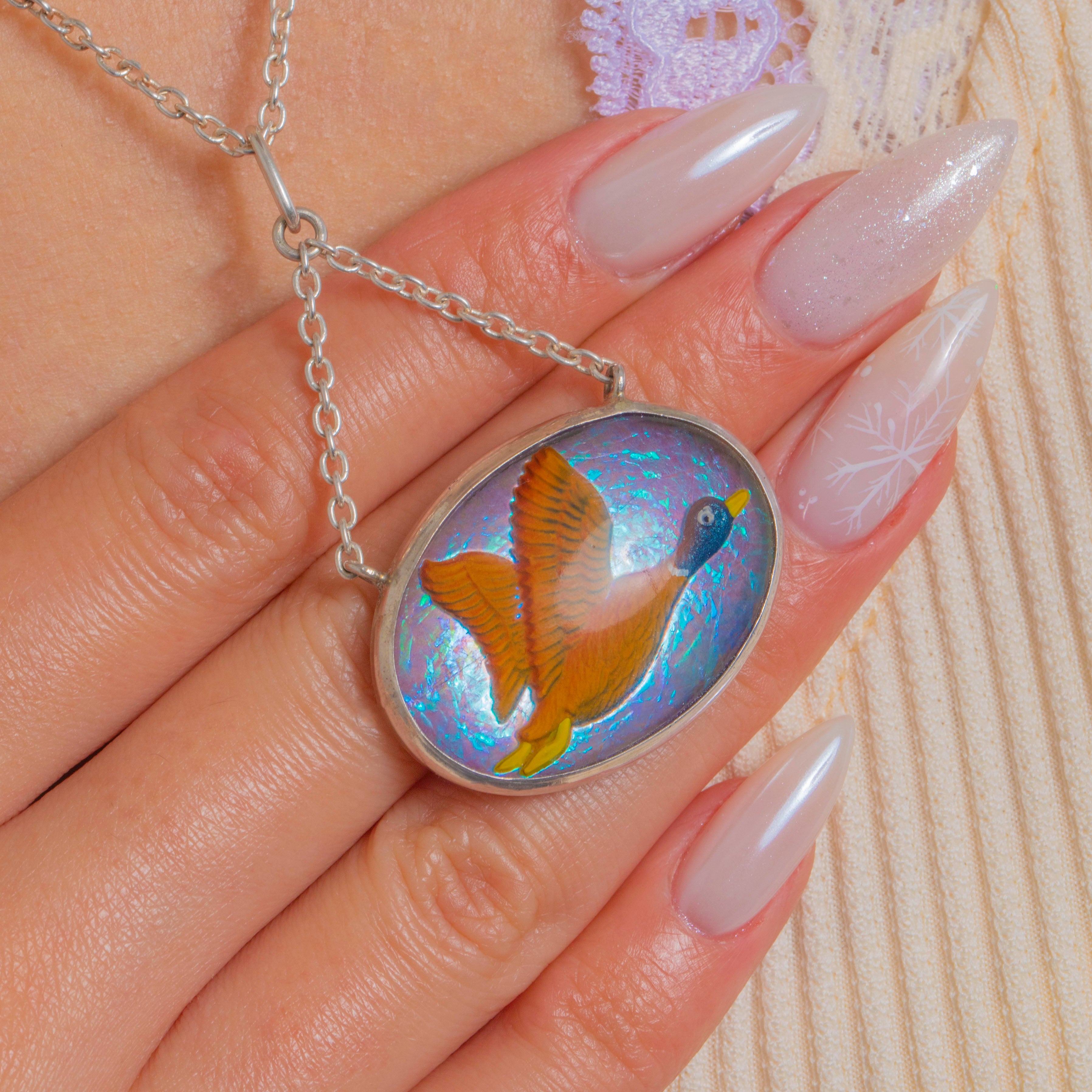 Reverse-Carved Flying Duck Pendant Necklace