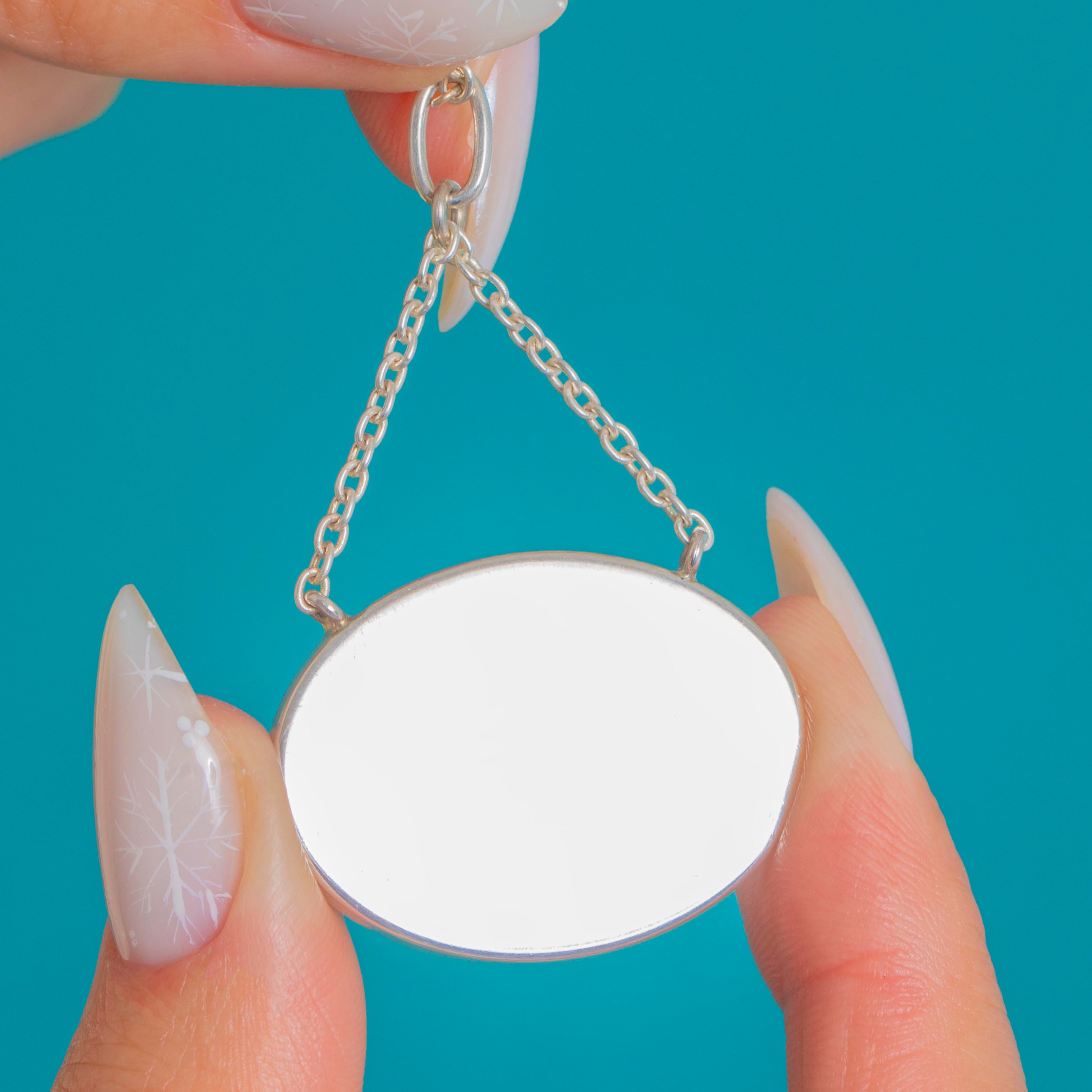 A charming reverse-carved and painted pendant necklace featuring a vivid bird in flight, its colours dancing over an iridescent blue-lilac backdrop. The clear domed resin cabochon is neatly framed by a smooth Silver rub-over bezel, creating a luminous window that feels both delicate and distinctive.