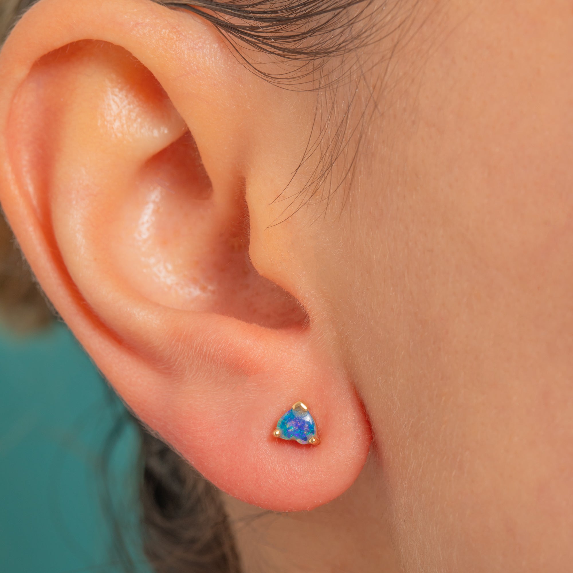 Petite heart-shaped Black Opal doublets glow with vivid blue-green flashes and hints of purple and pink in these refined 18ct Gold studs. The minimalist three-claw settings and bright polished finish keep the look clean, contemporary and joyfully stone-forward.