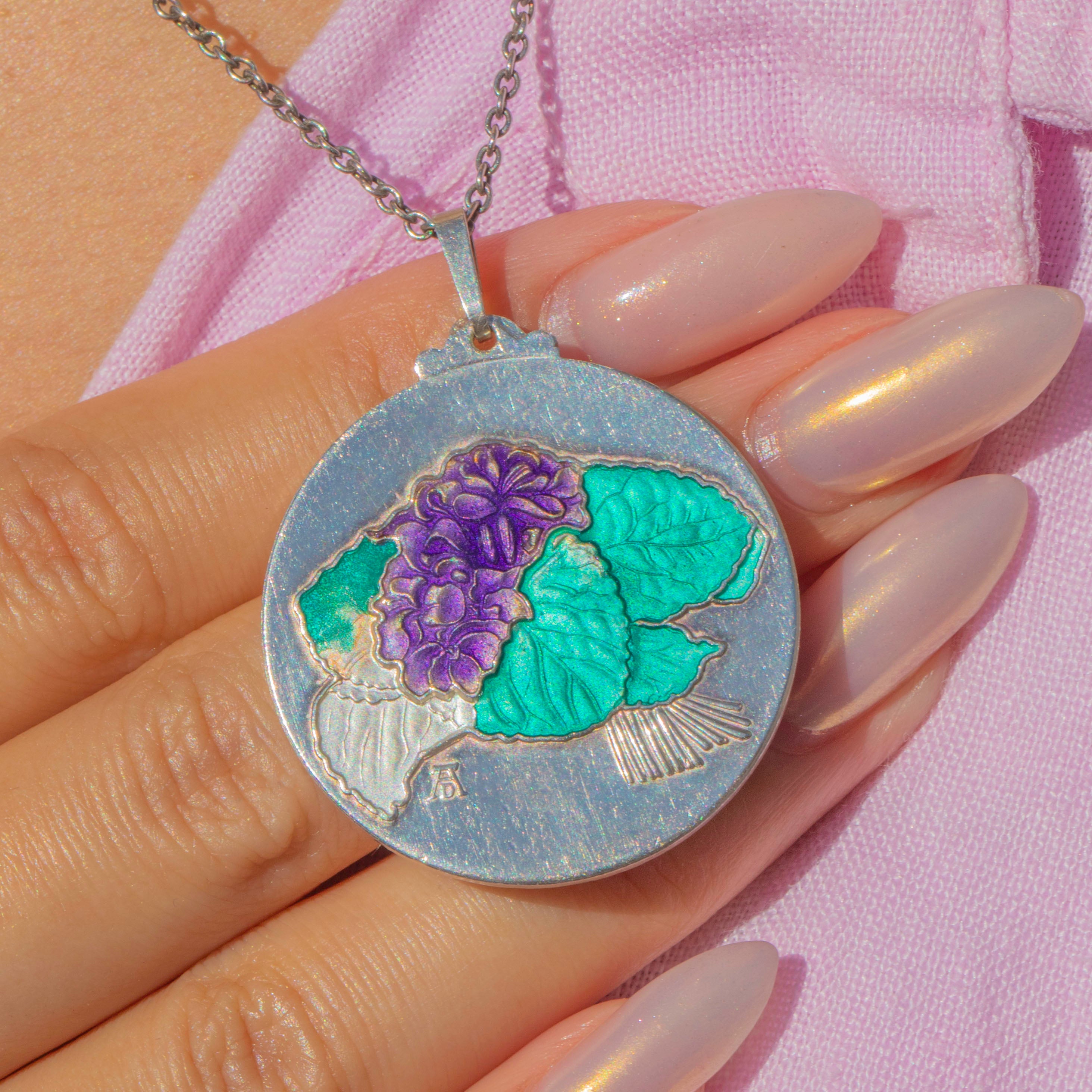 "Zum Muttertag" Albrecht Durer Silver Enamel Violet Flower Pendant
